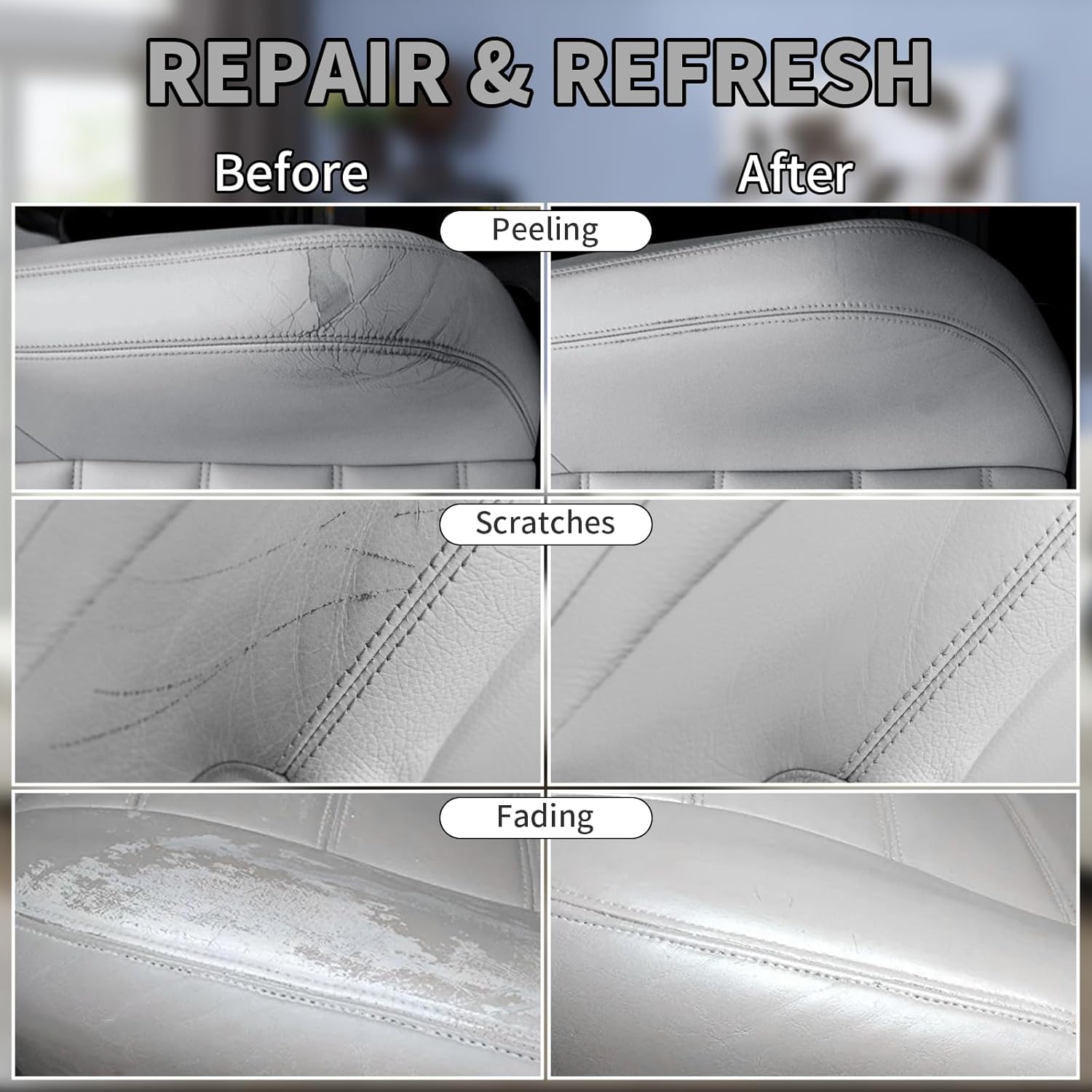 - Leather Stain Remover: Our leather color restorer eliminates wear and tear signs on your cherished leather and vinyl items.Leather paint helps you get rid of unsightly stains and faded hues,and restore color to their faded sofas,enhancing durability and preserving your leather items' natural luster