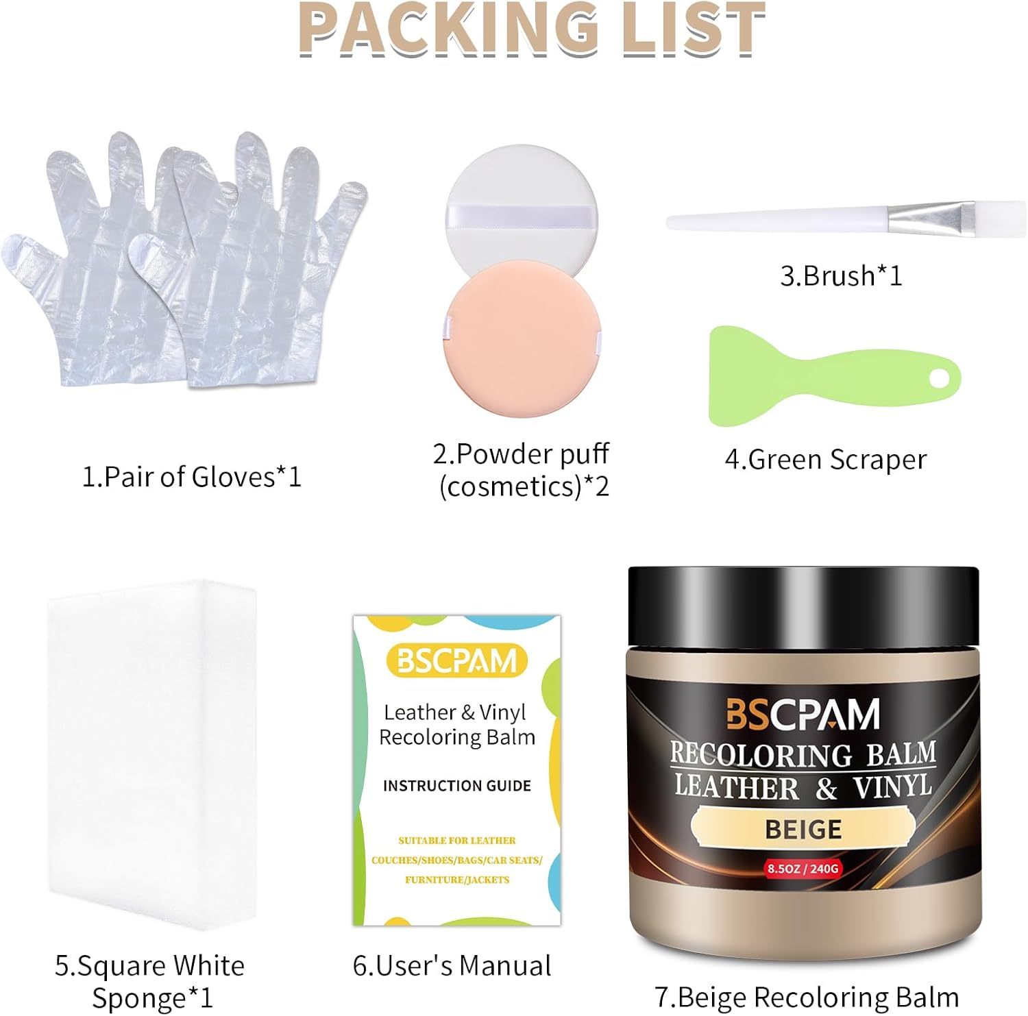 - Professional Leather Recoloring Balm: BSCPAM advanced leather repair gel is cream utilizes an advanced formula,effectively repairs scratches, cracks, and wear on the surface of leather, restoring its original appearance.Its special formula can penetrate the leather fibers, effectively repairing surface scratches, cracks, and wear while providing an additional protective layer to prevent future damage, helping to extend the lifespan of leather items