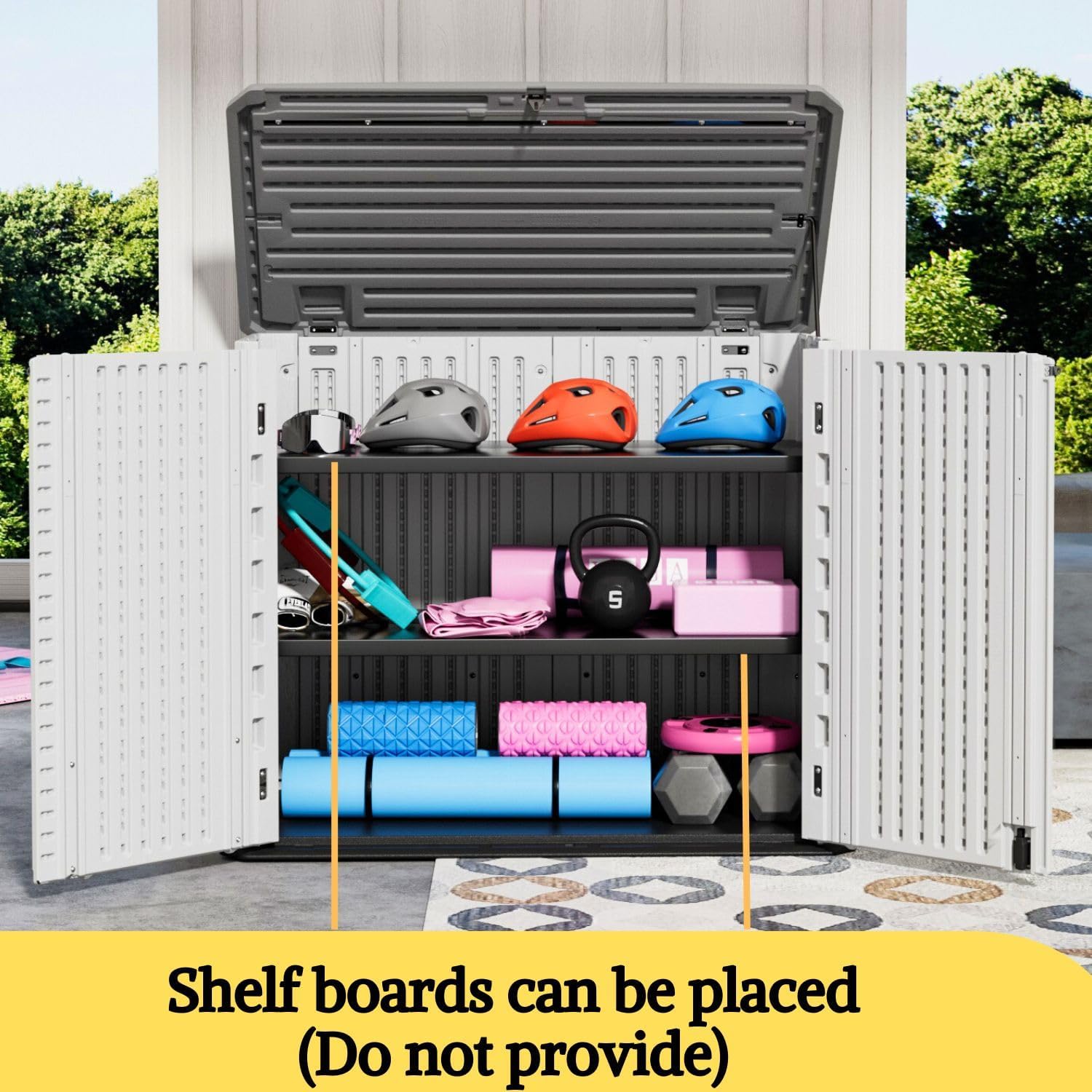 - Versatile Functionality: Includes a metal support bar for enhanced stability, allowing you to quickly and easily store items. The design also accommodates up to 2 additional shelves (sold separately), maximizing your outdoor storage options.