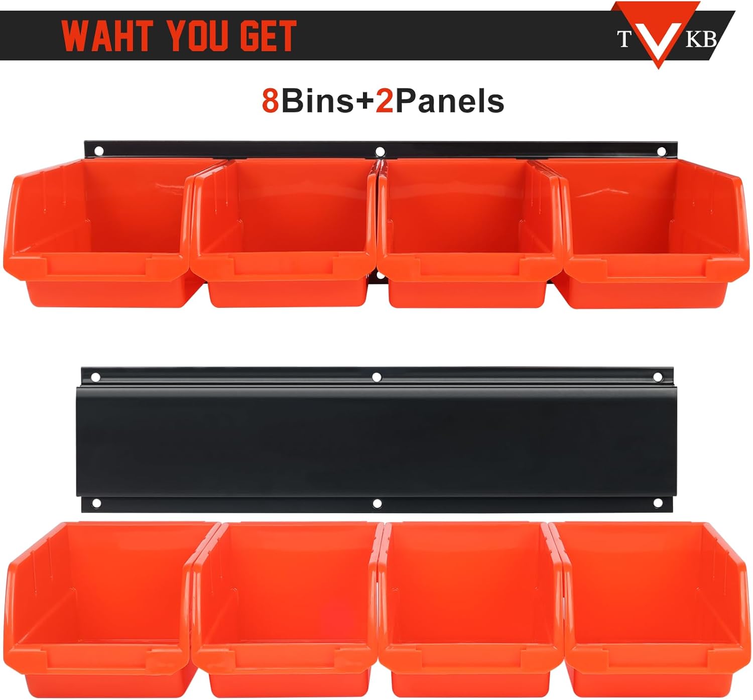 - Simple Installation and Space-Saving Design: Installation is quick and hassle-free with the included 8 bins and 2 rails. Simply attach the rails to the wall, and snap the bins into place. The bins can be mounted on pegboards or walls, maximizing vertical storage and helping to keep your workspace organized and clutter-free.
