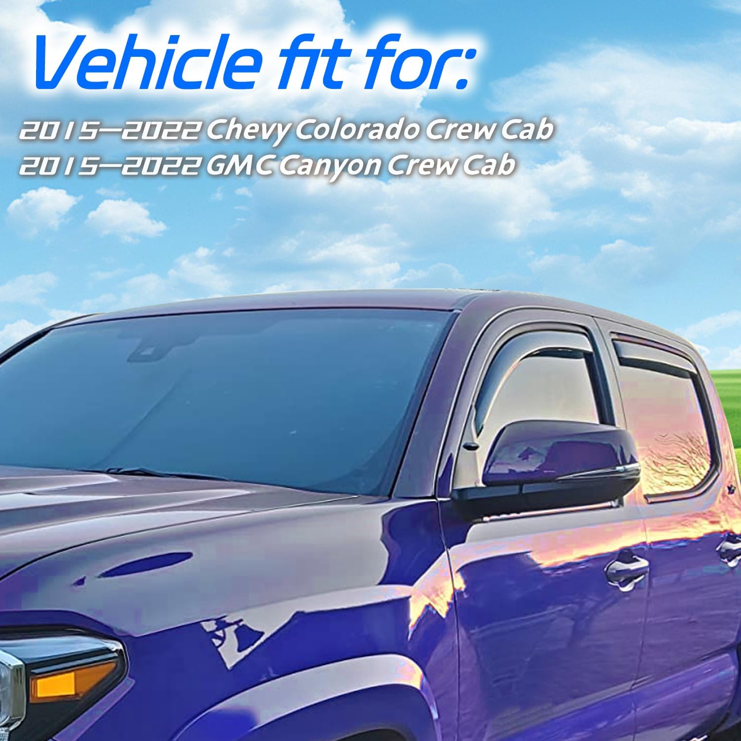 - 【Vehicles Fitments】CHYKORLA Window vent visors fits for Chevy Colorado 2015-2022 Crew Cab,GMC Canyon 2015-2022 Crew Cab. Please be advised that the visors are vehicle specific. Please check your vehicle's compatibility to ensure proper fitment
