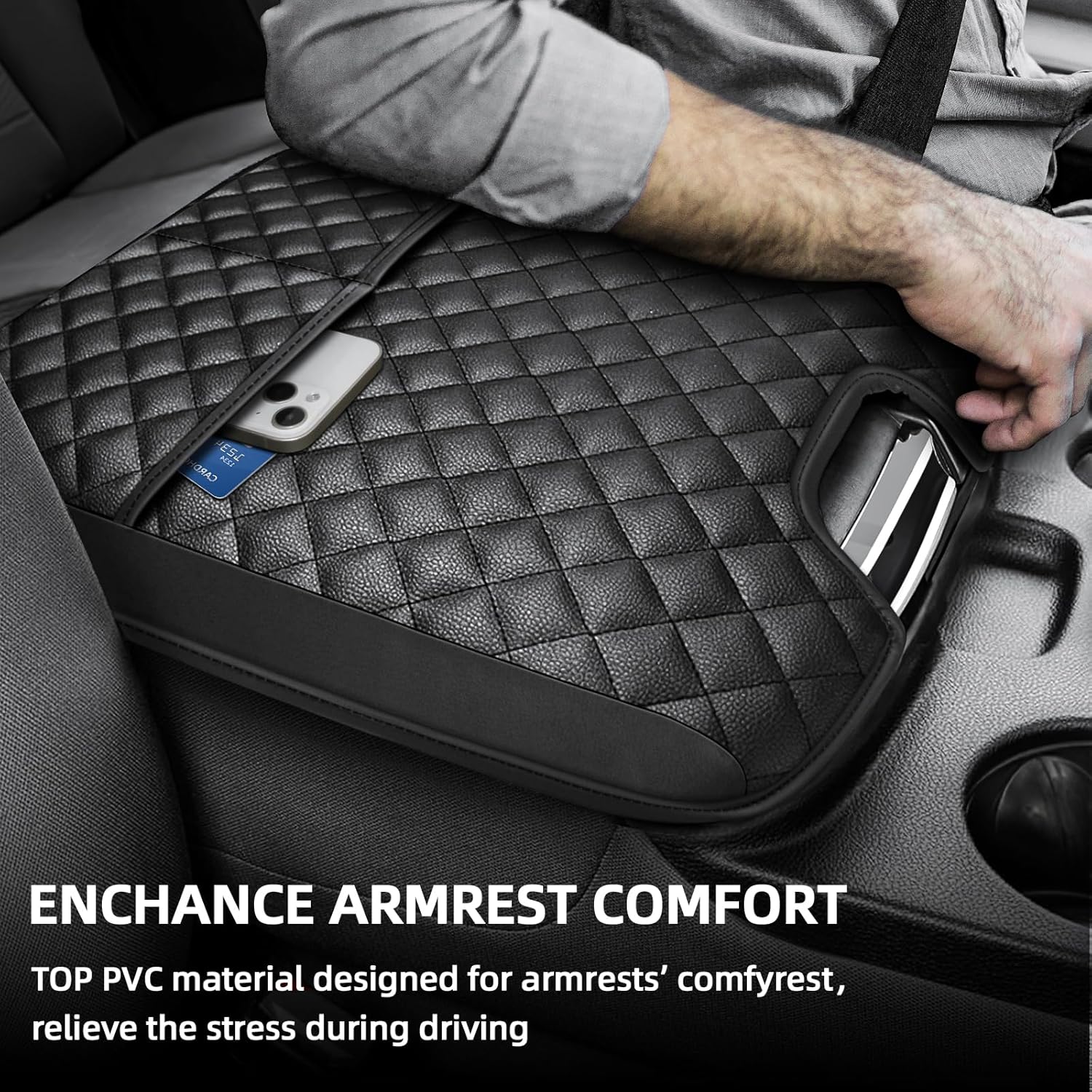 - 【Comfortable and Reliable Design】The GWAWF center console armrest cover is crafted from high-quality PVC leather, providing a soft and comfortable touch. It’s resistant to wear, water, and stains, ensuring long-lasting performance and year-round comfort