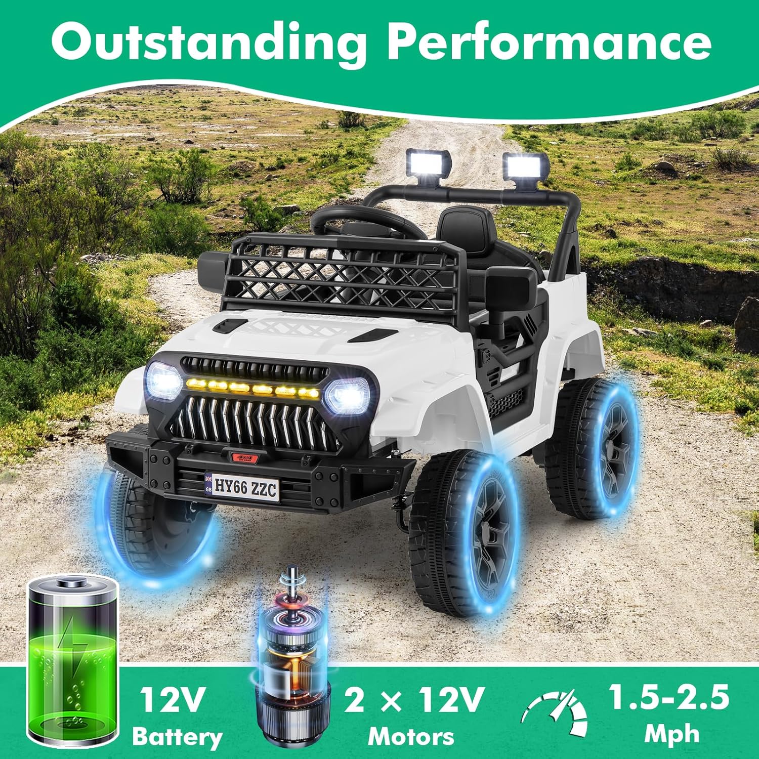 - 【Exceptional Performance】 Powered by a 12V battery and twin 12V motors, this electric vehicle delivers impressive performance and durability. The adjustable speed range of 1.5-2.5 mph brings a safe driving experience for little ones, allowing them to enjoy their adventures with confidence.
