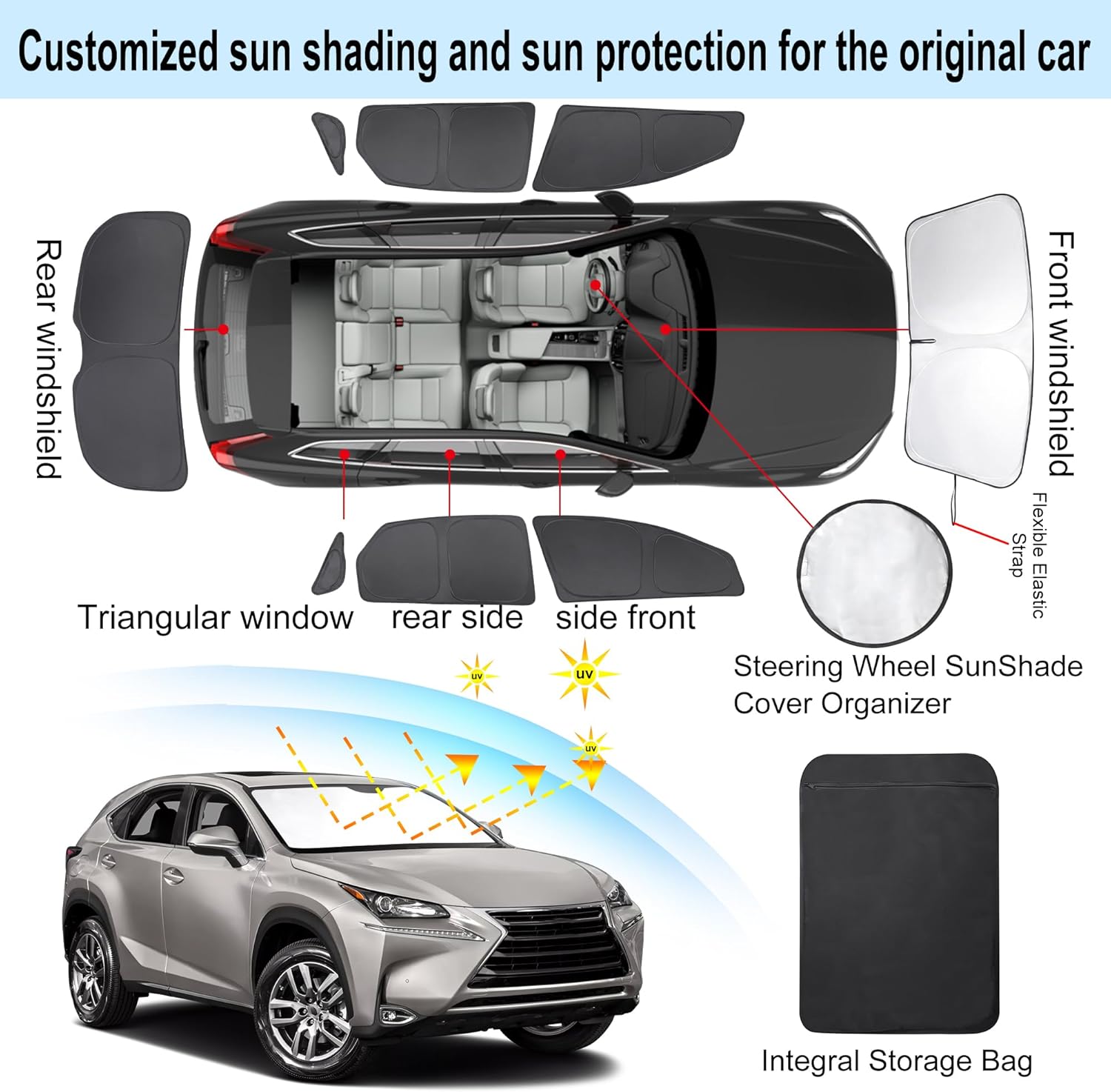 TINGLU Window Shades for Lexus NX300h/NX300/NX200t 2015-2021 Accessories Car Side Full Windows Rear Triangular Windshield Sun Shade Sun UV Rays & Privacy Protection for Camping,Napping&Relaxing 8PCS