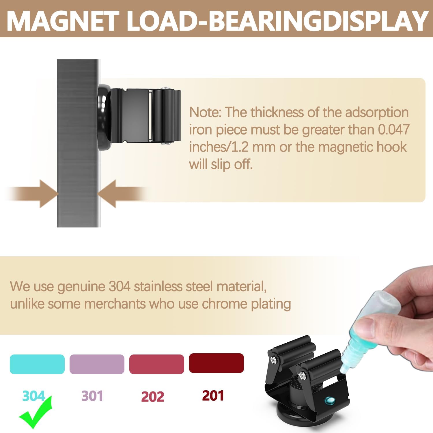 - [PREMIUM QUALITY] It comes with 4 strong magnetic broom hanger and 4 magnetic hooks.For the broom holder wall mount with Anti-Rust stainless steel and the grip of the abrasion-resistant silicone grip keeps broom and dustpan,tools,shovels very well, mop and broom holder wall mount won't fall off easily last for years,for the magnetic hooks you can easily stick to the surface of refrigerator, iron door, iron filing cabinet