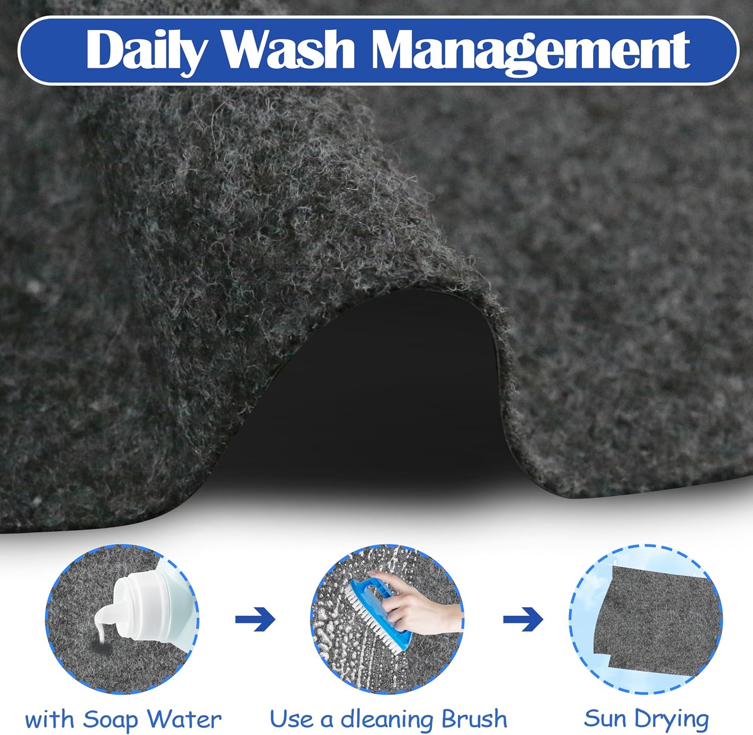 - 【Durable Materials】Constructed with a felt surface and waterproof PE backing, this durable outdoor carport mat effectively absorbs water and oil while remaining slip-resistant. Its robust design resists tearing and breaking, ensuring long-lasting protection for your storage shed floor. The mat's reliability, reusability, and safety features make it a dependable choice that you can use with confidence for an extended period.