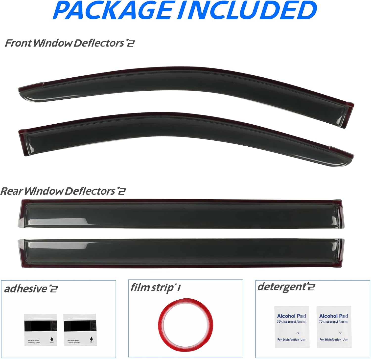 - Improve Driving Experience: Allows fresh air to circulate through open windows while keeping the rain out or reduces heat. Reduce mirror and window fogging; reduce sun glare through side window; reduce wind noise
