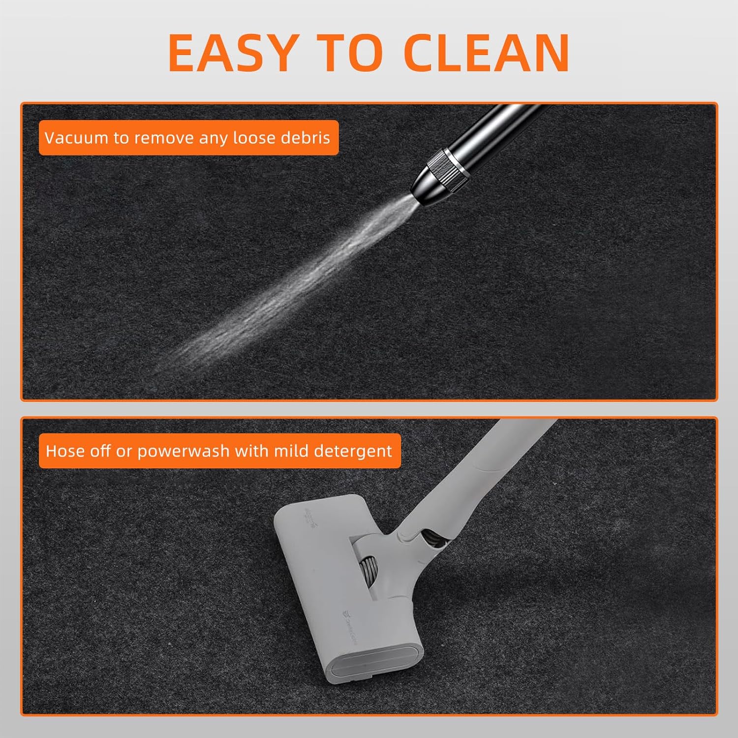 - EASY TO CLEAN: When your mat gets dirty, simply scrub with soap, hose off and hang dry it to keep it clean.This mat is a practical solution for keeping your garage floor clean and protected