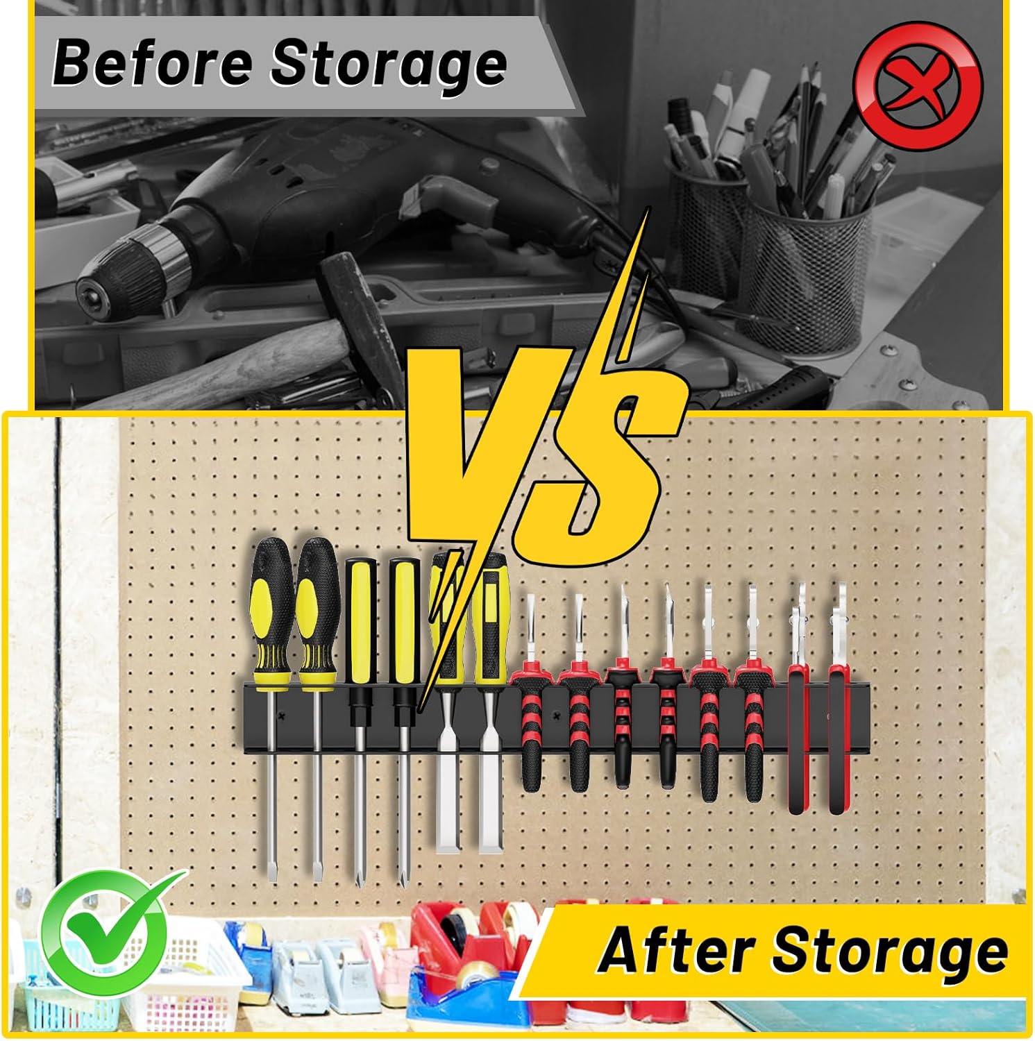 - Quick Tool Accesse:Easily find pliers and screwdrivers with this wall mounted screwdriver organizer, which increases productivity by keeping your frequently used tools organized and within easy reach