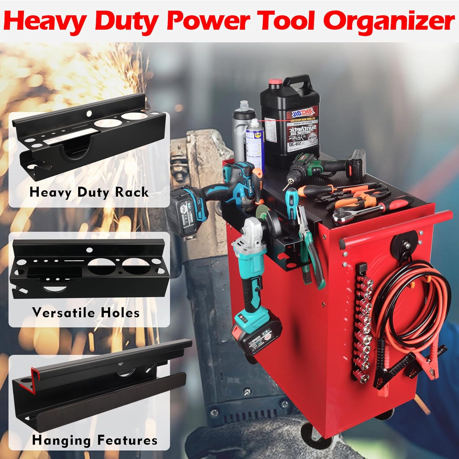 MUTUACTOR Power Tool Organizer,Heavy Duty Drill Driver Angle Grinder Holder,Quick Access Impact Drill Holder Tool Rack Utility for Rolling Tools Chest Utility Storage Carts