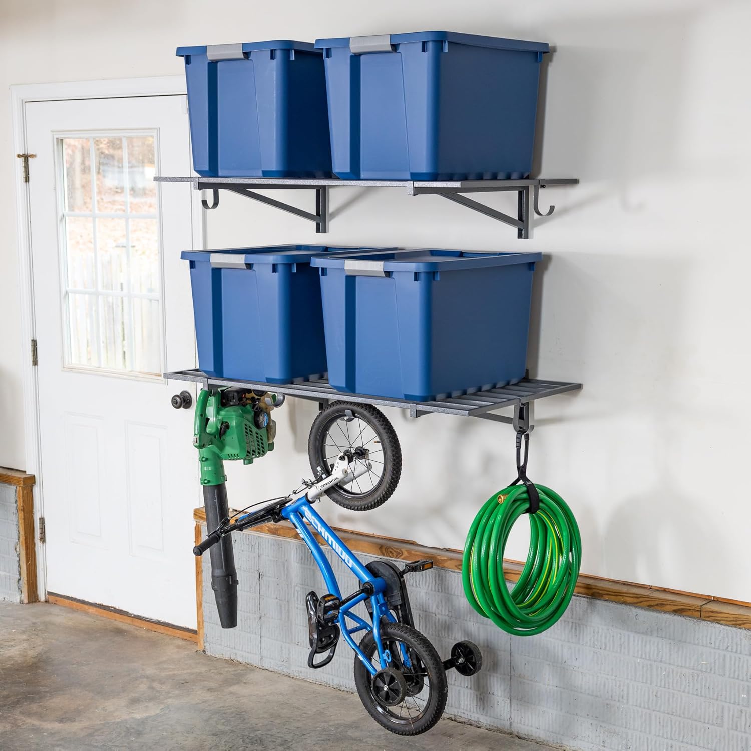 - HEAVY-DUTY STORAGE SHELVES – This 2-pack of wall-mounted garage shelves offers dependable, space-saving storage for any setup. Available in a range of sizes to suit your space, each shelf supports up to 200 lbs—ideal for storing bins, tools, tires, and gear. A solid pick for maximizing wall shelves in your garage, shed, or utility room.