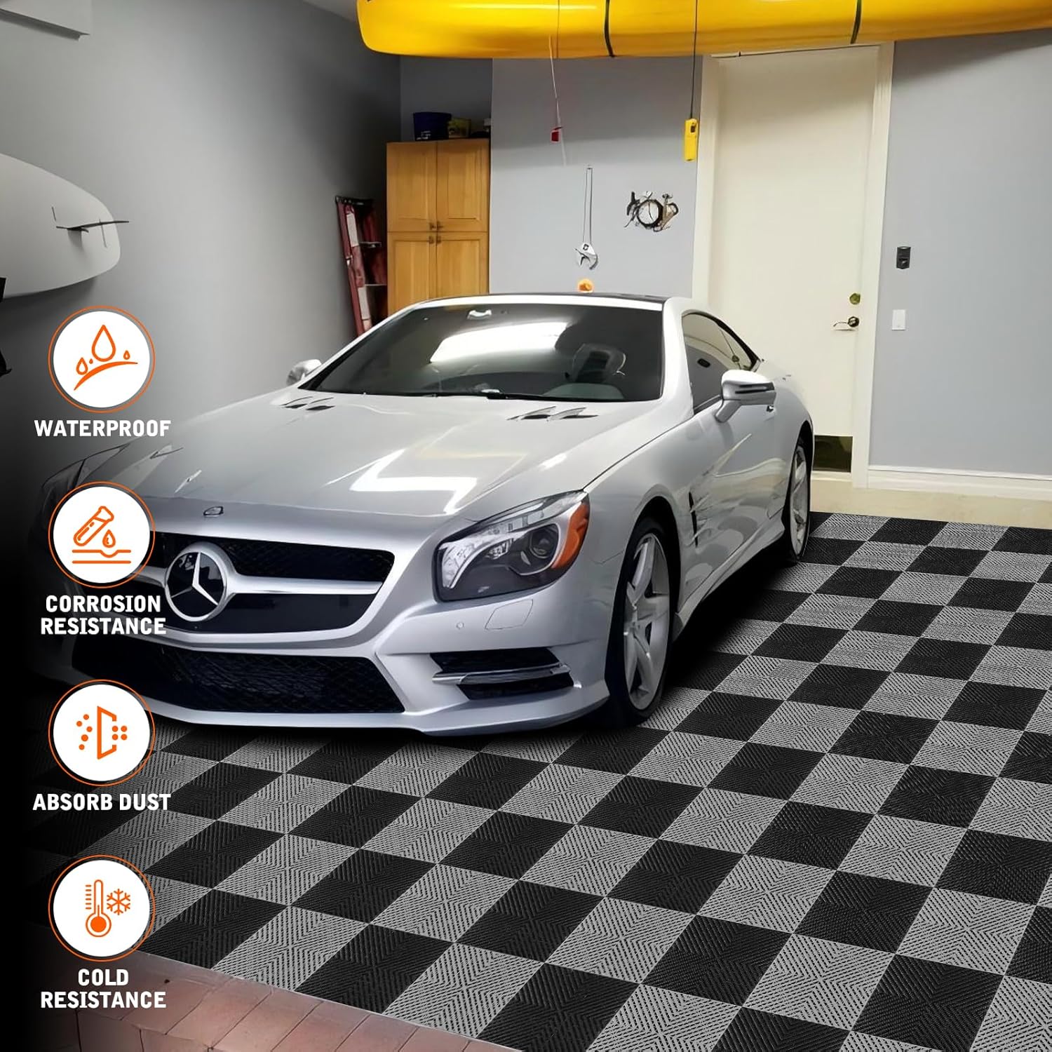- Durable Construction: These interlocking garage tiles feature a high bearing capacity to withstand heavy loads and equipment.