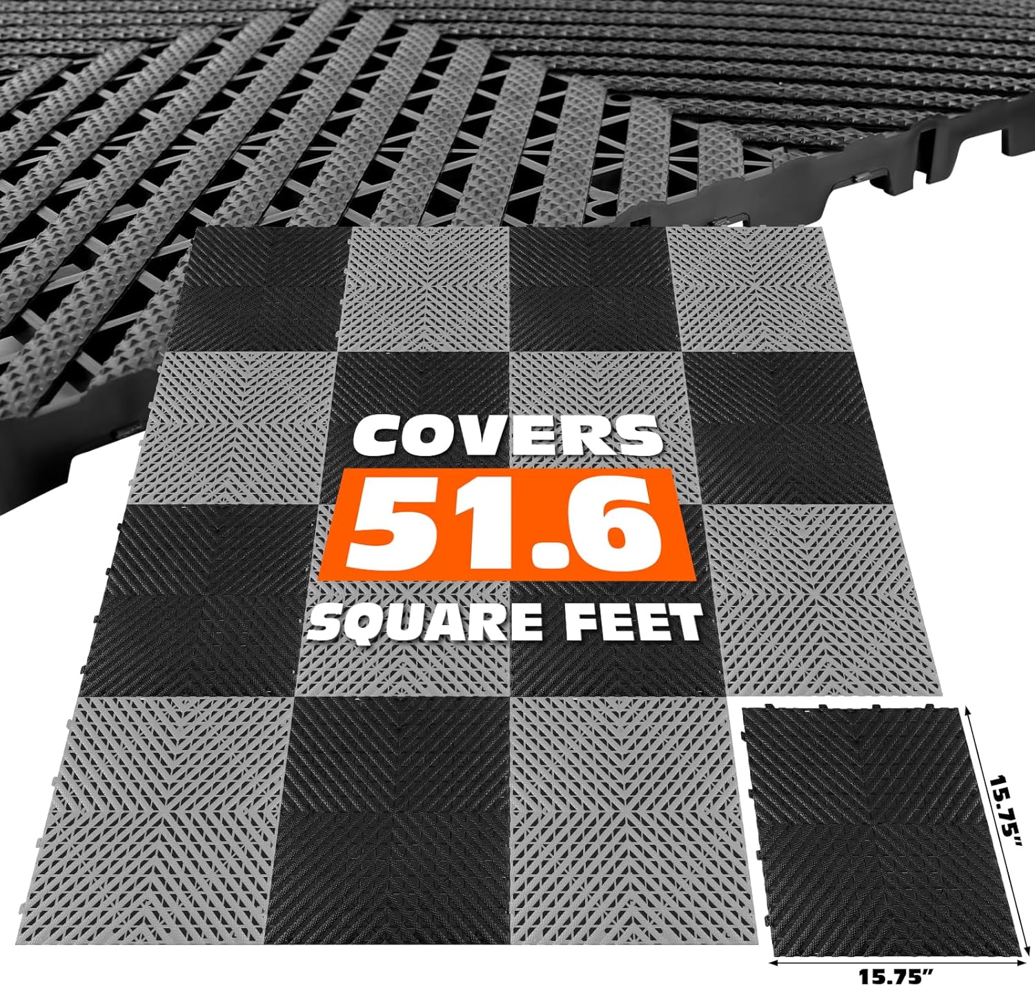Interlocking Garage Floor Tiles - 0.79in,Vented, Self-Draining, Non-Slip Flooring, Modular, Virgin Polypropylene, Ideal for Garages, Patios, Basements, Decks -51.6 sq ft (Black, 30PCS)