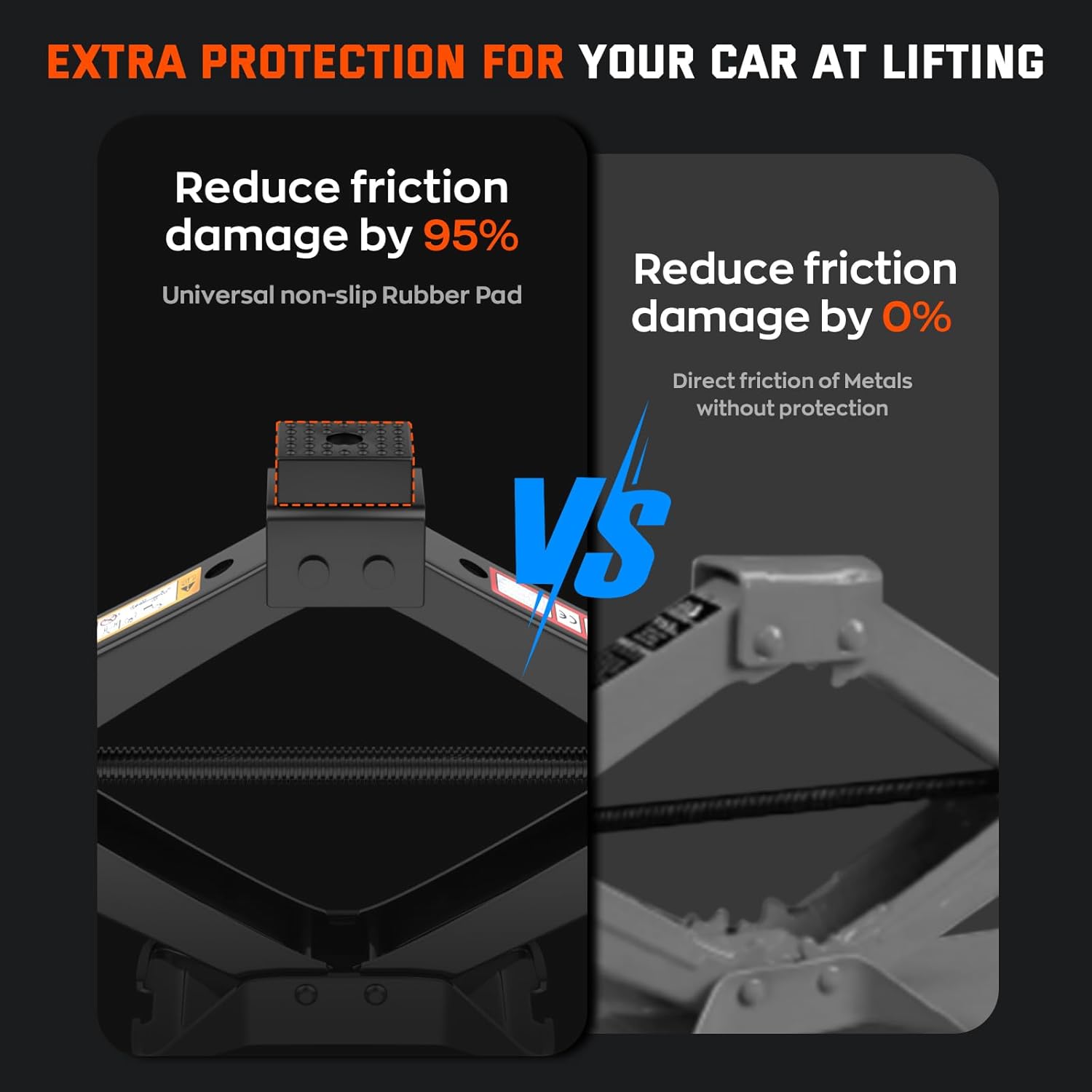 - 👍【Reliable and Safety】 This car jack is Constructed with high-strength cold-rolled steel and a widened base for increased stability. and this jack comes with non-slip rubber on the jack head to protect your vehicle's chassis and ensure optimal safety during lifting.