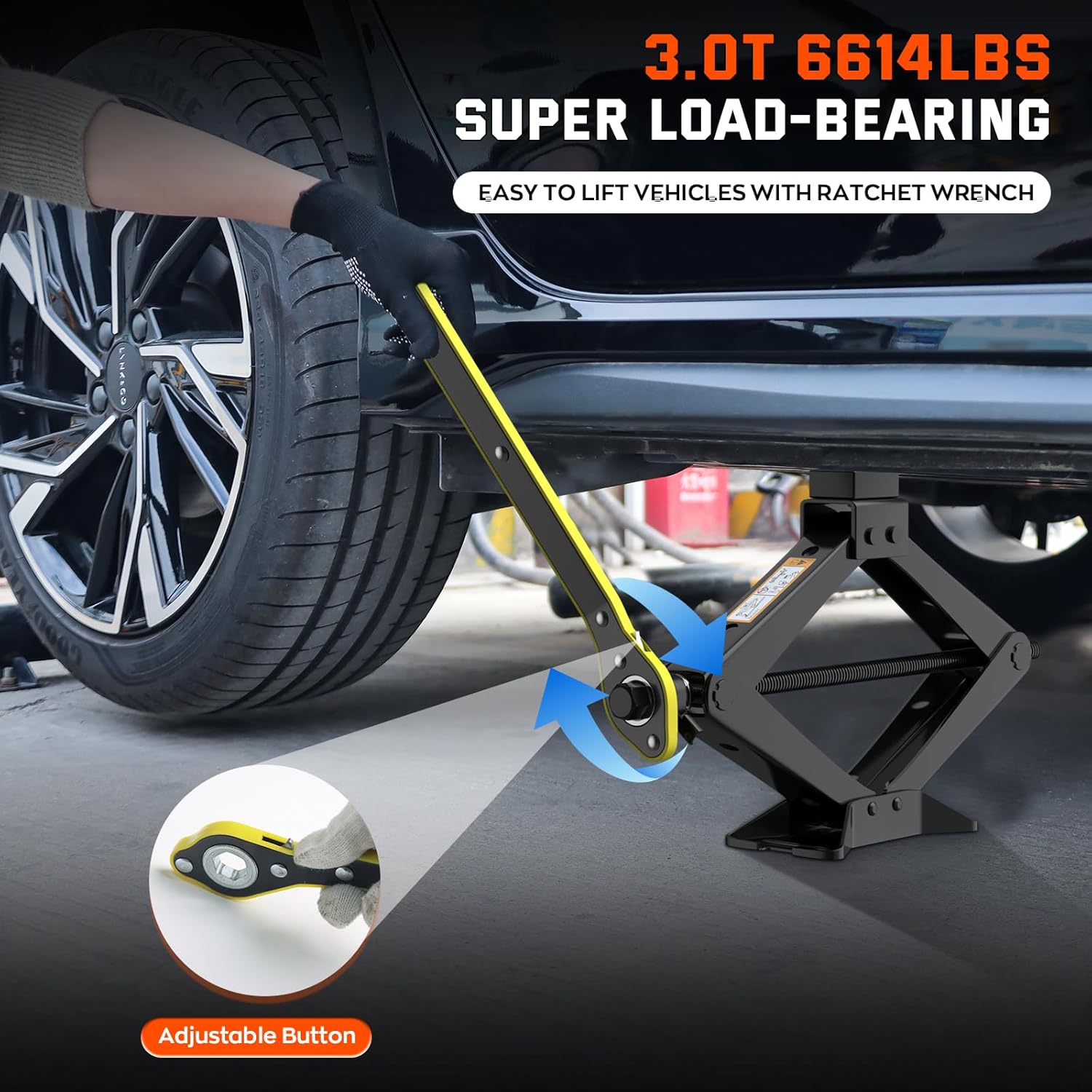 New Version Car Jack Kit Scissor Jack for Car 3 Ton 6614 lbs Spare Tire Changing Kit,Portable Tire Jack Repair Kit with Lug Wrench,Car Lifting Jack for Auto/SUV/MPV