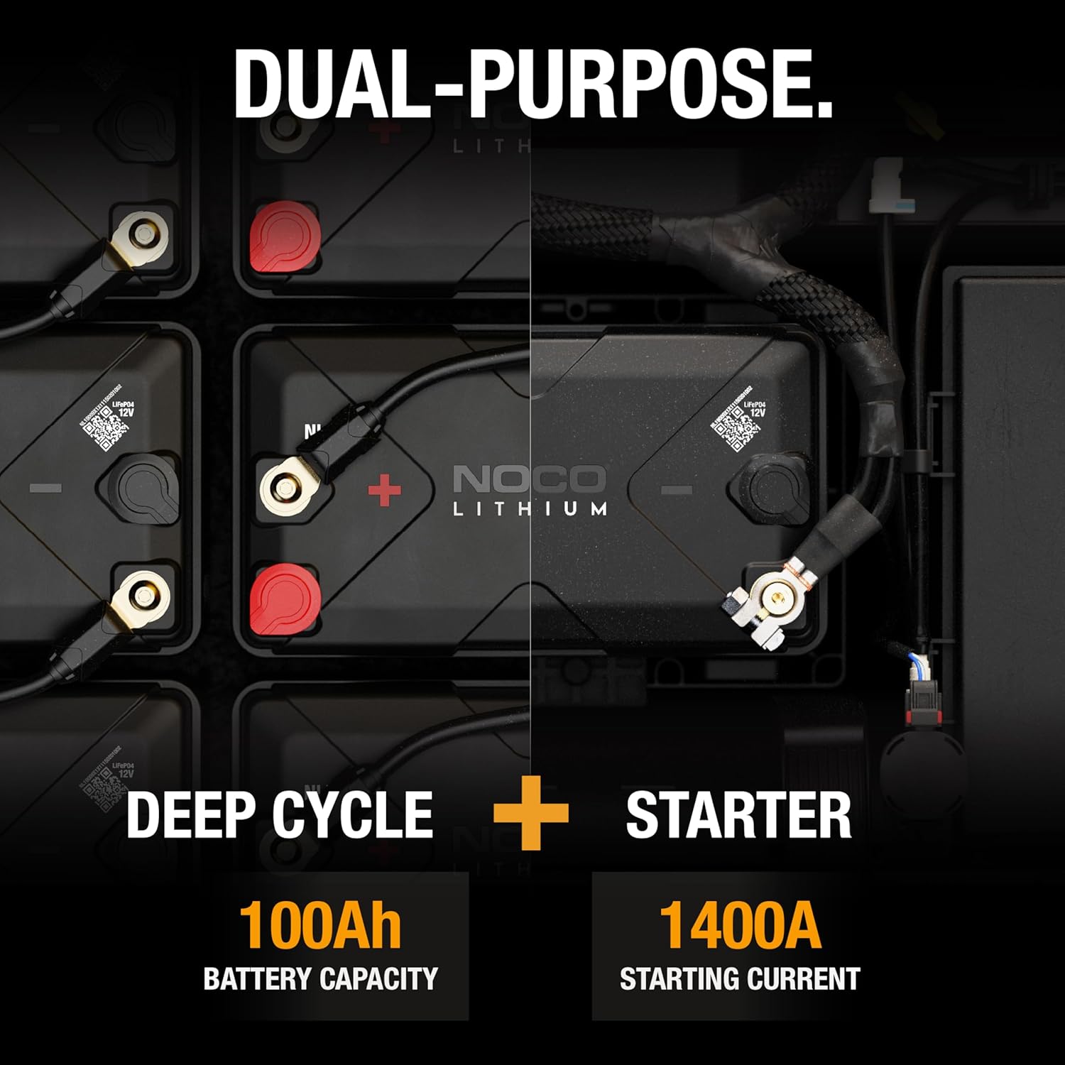NOCO Lithium NLX27: 12V Dual-Purpose LiFePO4 Lithium-Ion Battery - 100Ah Deep-Cycle and 1400A Group 27 Starter Battery - UL Listed - Built-In Dynamic BMS