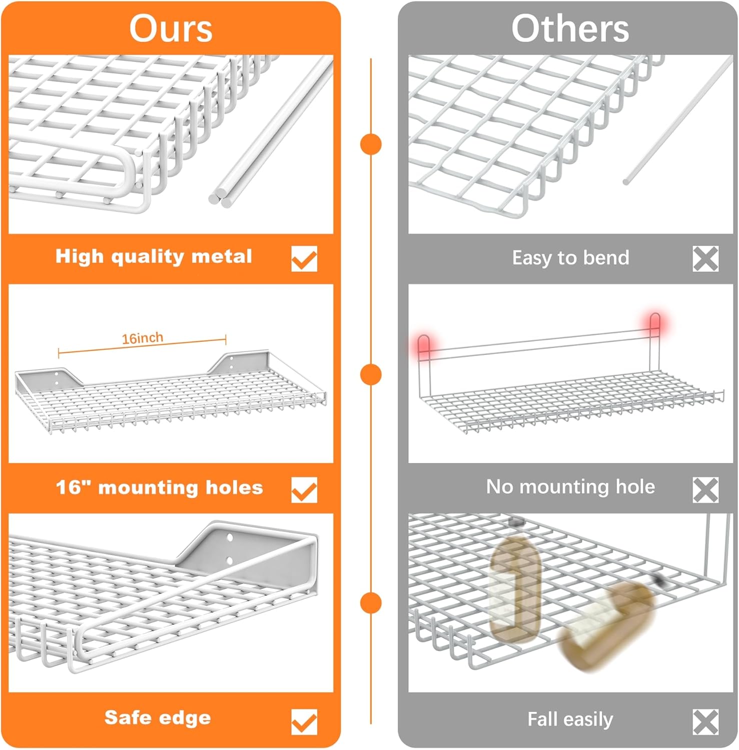 - Safety First: Designed with smooth, rounded edges to prevent injury and ensure secure storage. Items stay in place without the risk of slipping off, making it a safer choice for your garage, closet, or laundry room