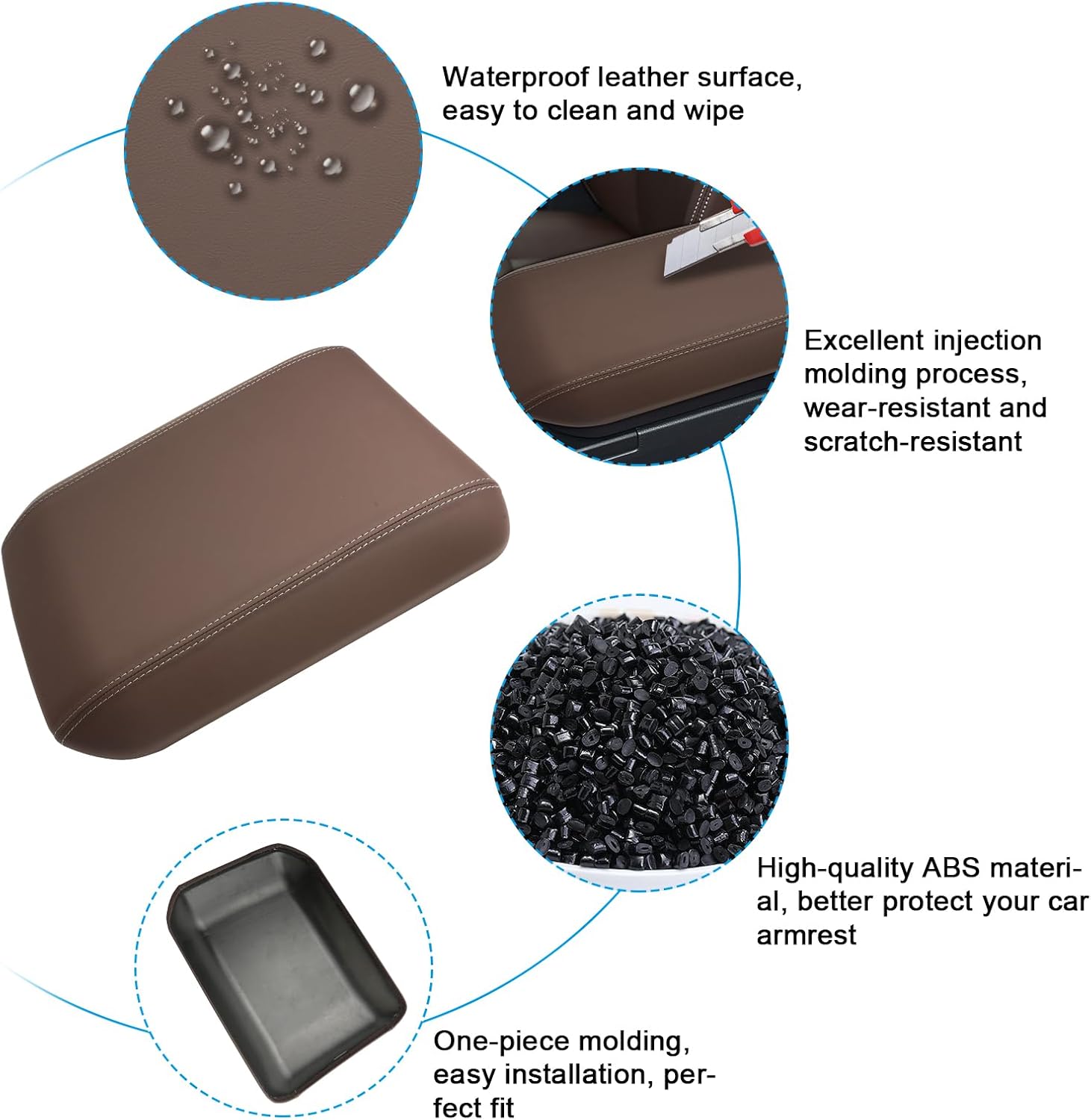 - Full Protection for the Armrest: The ABS plastic cover with leatherette surface protects the original armrest from aging, scratches, dirt, and sticky fingerprints, ensuring the armrest's longevity and pristine condition