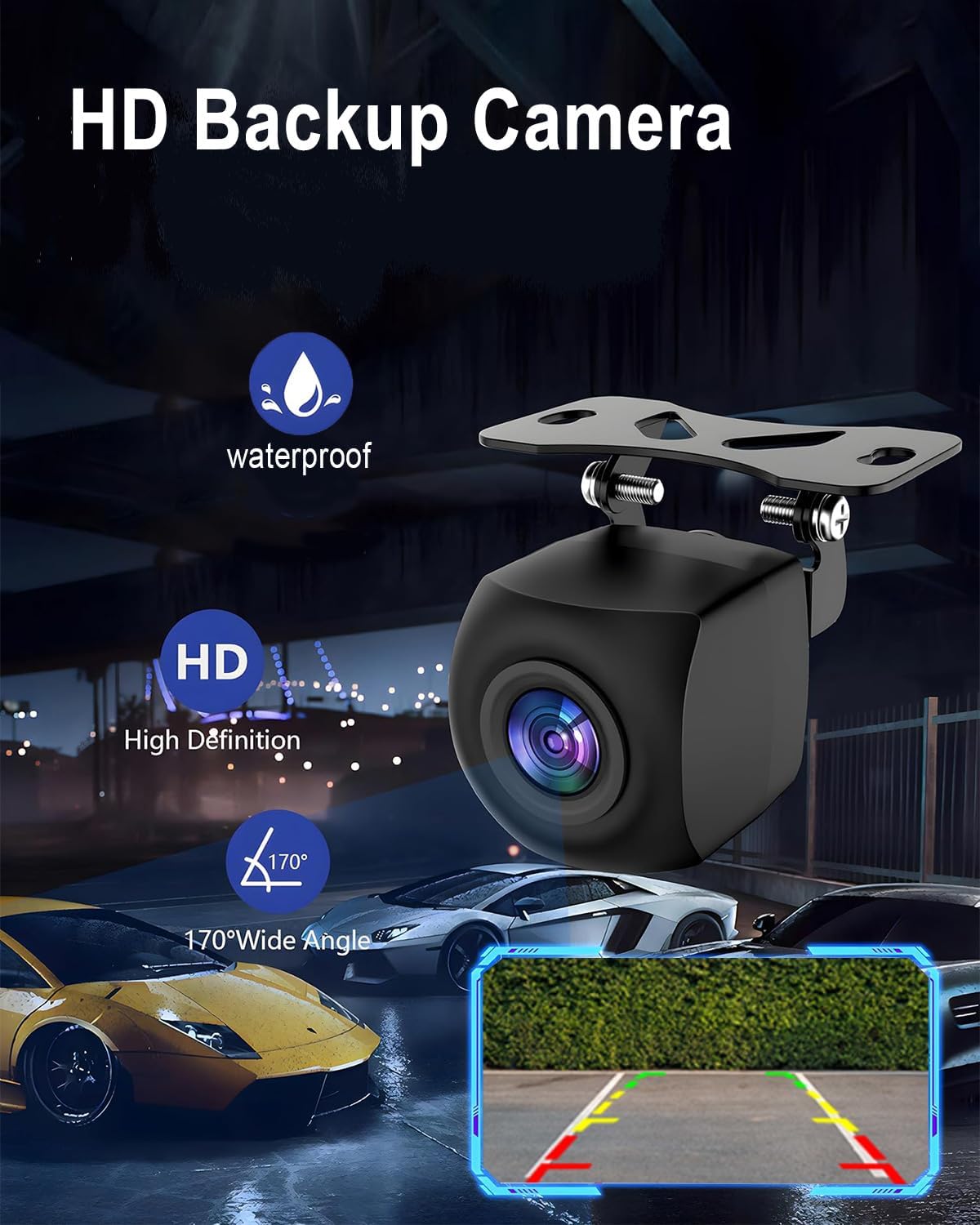 - 【Voice Control & Safe driving】With voice control through Siri or Google Assistant, you can navigate various features safely without needing to touch the screen. The device includes a 1080P waterproof backup camera, which enhances safety while parking and reversing, particularly at night.