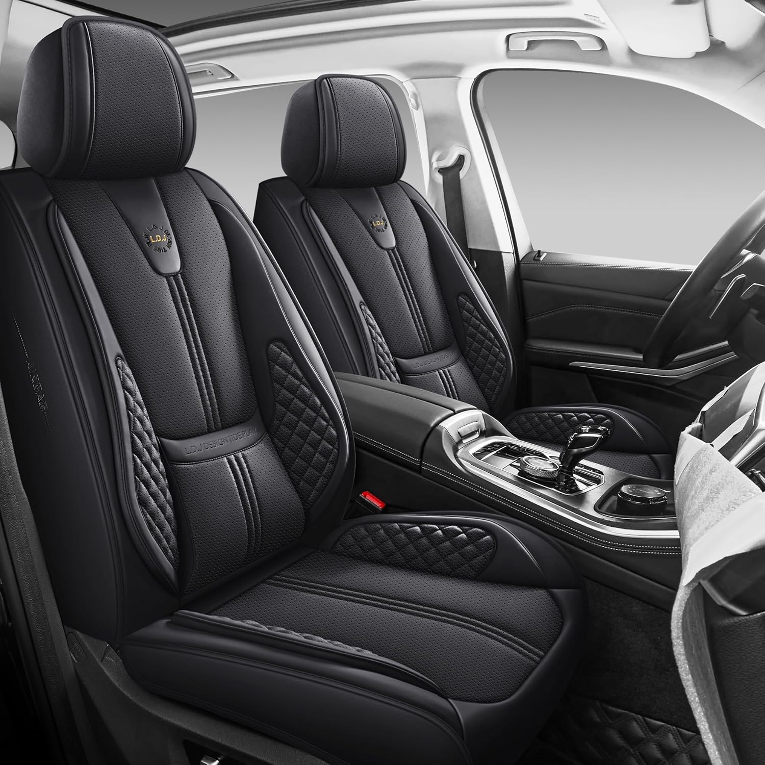 Car Seat Covers Front Only, Black Seat Cover for Cars Compatible Airbag, Easy Install Luxury Leather Automotive Seat Covers with Lumbar Support, for Car, Truck, SUV, Black