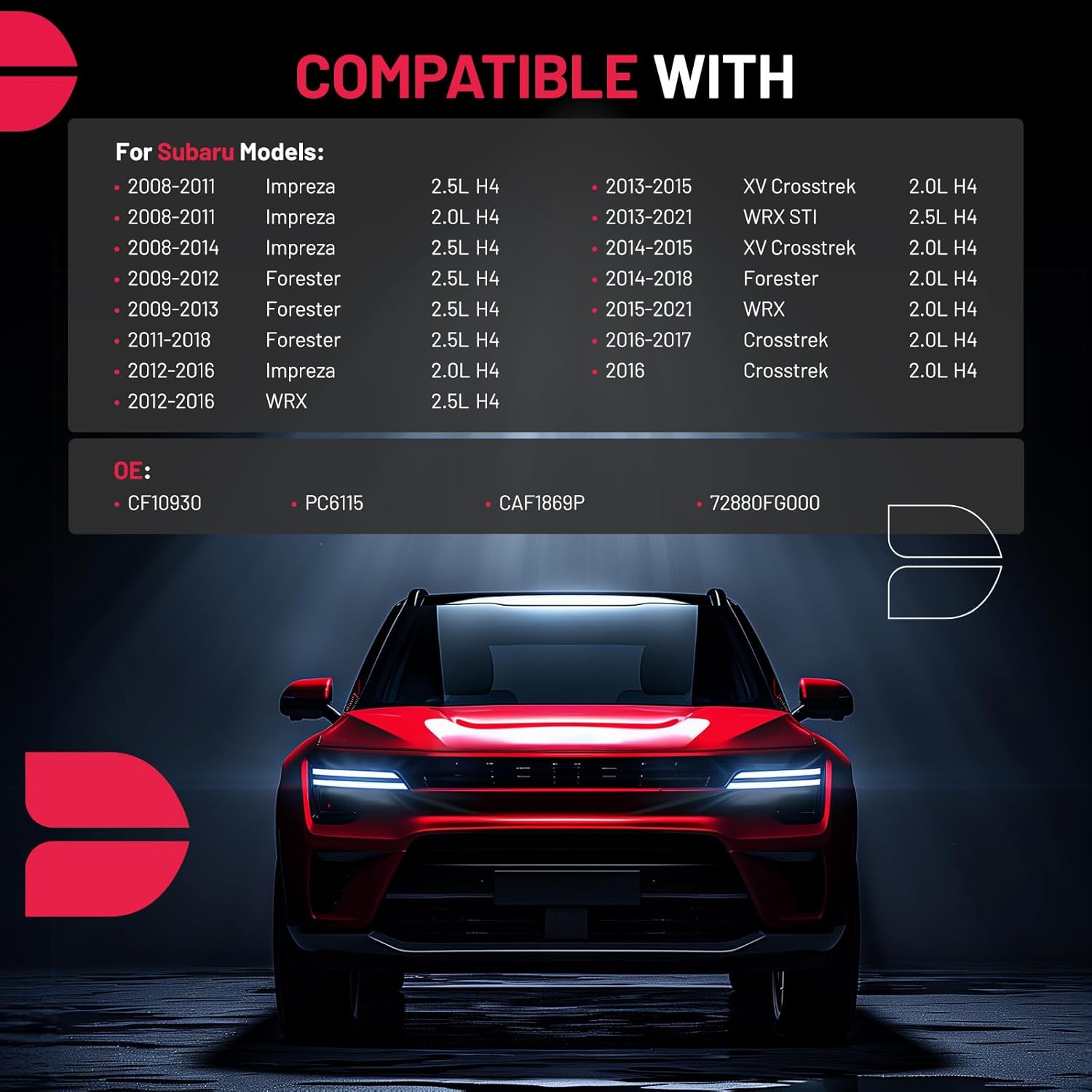 - 【Fitment】Compatible with Subaru Models: 2015-2021 WRX 2.0L H4, 2012-2016 WRX 2.5L H4, 2013-2021 WRX STI 2.5L H4, 2014-2018 Forester 2.0L H4, 2009-2018 Forester 2.5L H4, 2016-2017 Crosstrek 2.0L H4, 2013-2015 XV Crosstrek 2.0L H4, 2008-2016 Impreza 2.0L H4, 2008-2014 Impreza 2.5L H4