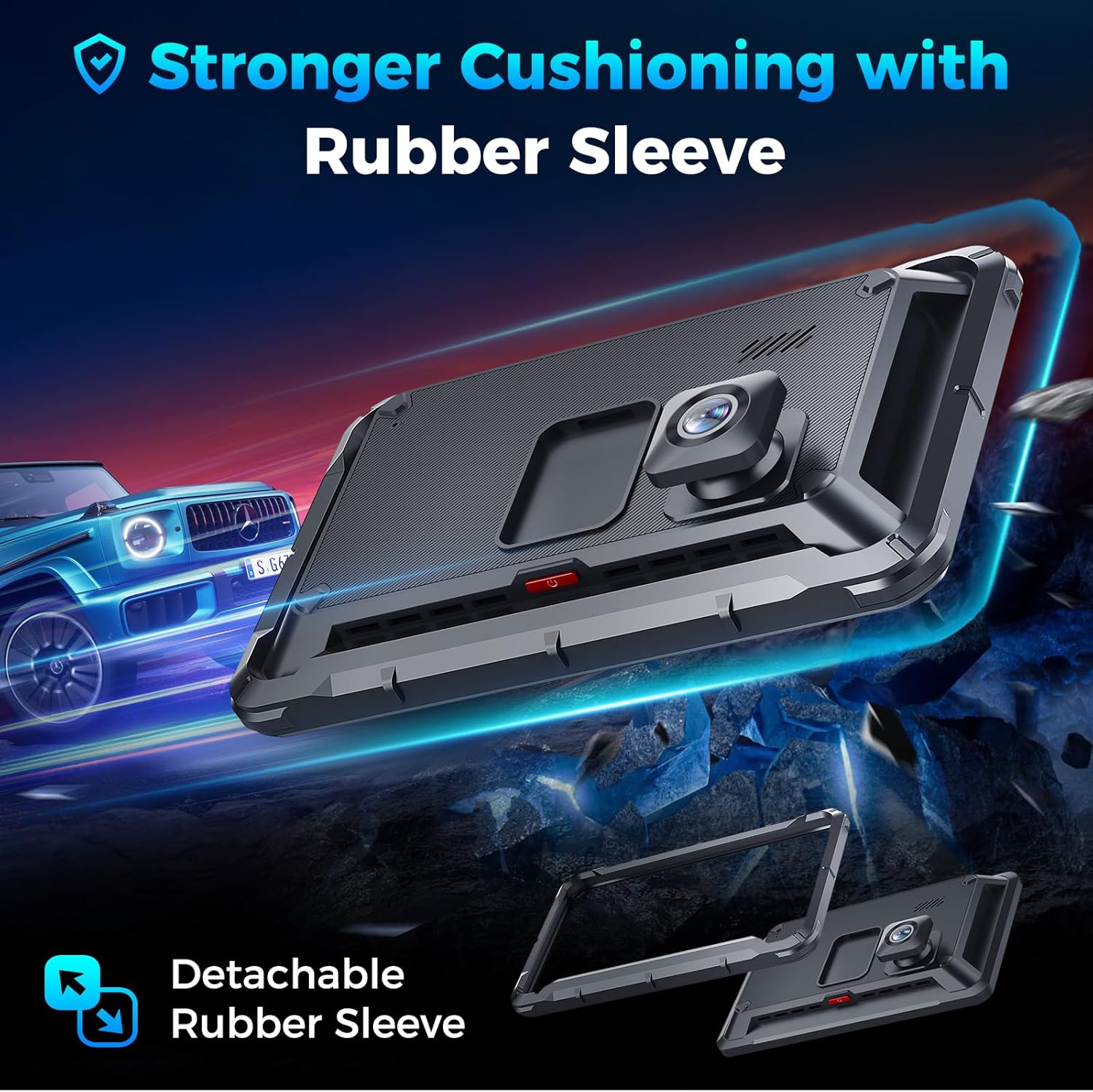 - Upgraded Super Strong Suction Cup and Detachable Rubber Sleeve: The upgraded bracket is more solid and covers a larger area. Whether you are on a rugged mountain road or braking sharply, the suction cups can be firmly attached to the dashboard or windshield, and do not fall off easily, it is melt-resistant and supports washing and reuse, more to protect your driving safety. The detachable rubber sleeve can be a great cushion.