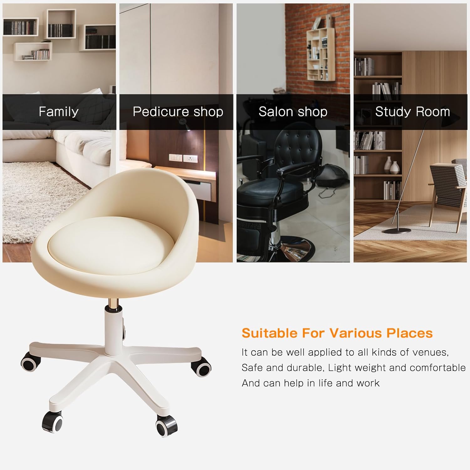 - 【MULTI-SCENE APPLICATION ROLLING STOOL】This versatile stool is perfect for a variety of settings, including salons, spas, tattoo studios, facial care, lash drawing, garages, kitchens, and massage therapy.