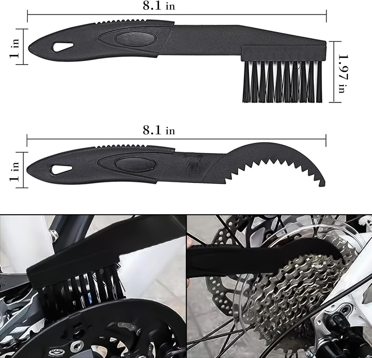 - Unique Design: This motorcycle bicycle cleaning brush set features a unique design of three-sided bristles to clean all four sides of motorcycle and bicycle chains, and long bristles to clean other parts of the bike, such as gears, sprockets and wheels.