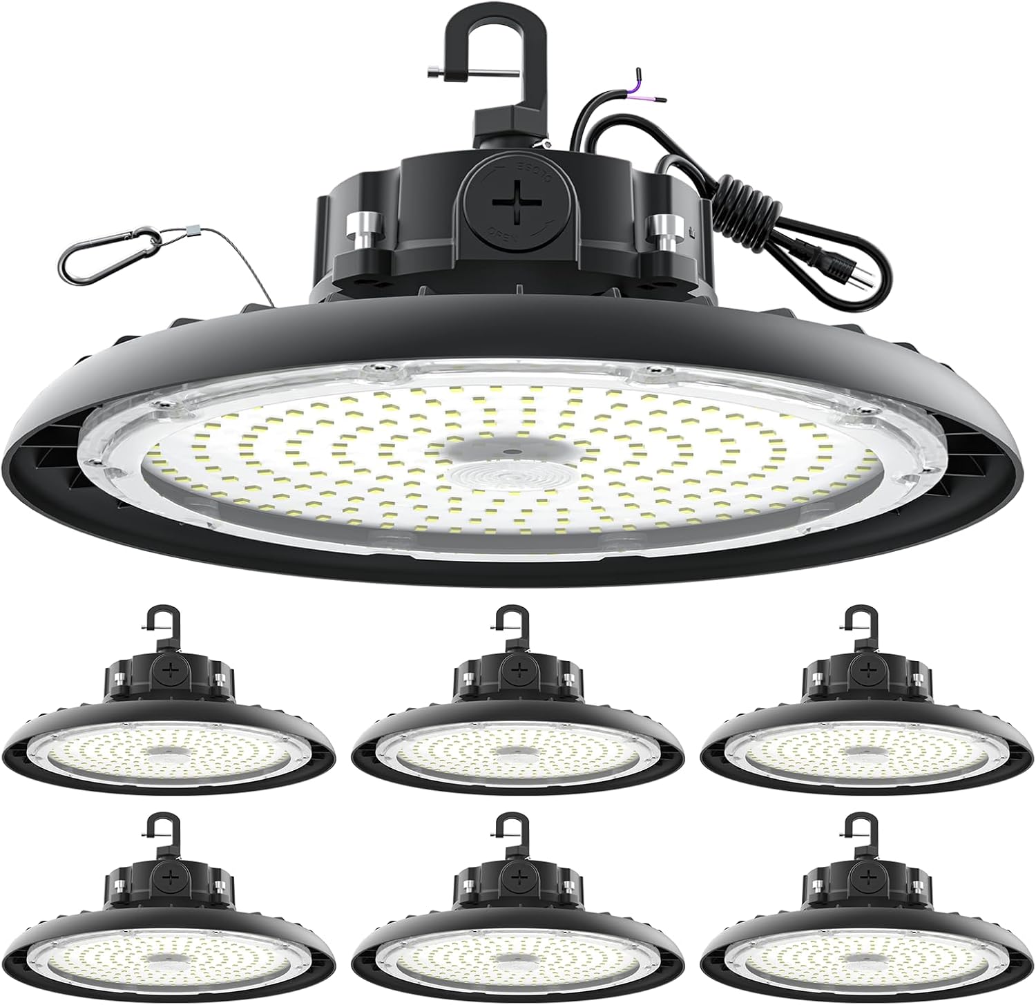 High Bay Lights 180W LED UFO Light LED Shop Lights 32400 LM 6000K IP65 Commercial Bay Lighting Fixture 5ft Cable Plug & Play for Warehouse Factory Garage Workshop Barn 6 Pack