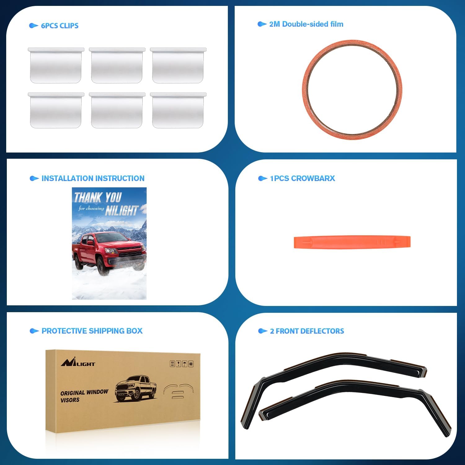 - Advantage:Nilight window deflectors are great for all weather conditions,help improve ventilation inside and outside your car to reduce mirror and window fogging while increasing air circulation.With our side window deflectors,it deflect the rain and noise away from your windows to make your driving more enjoyable