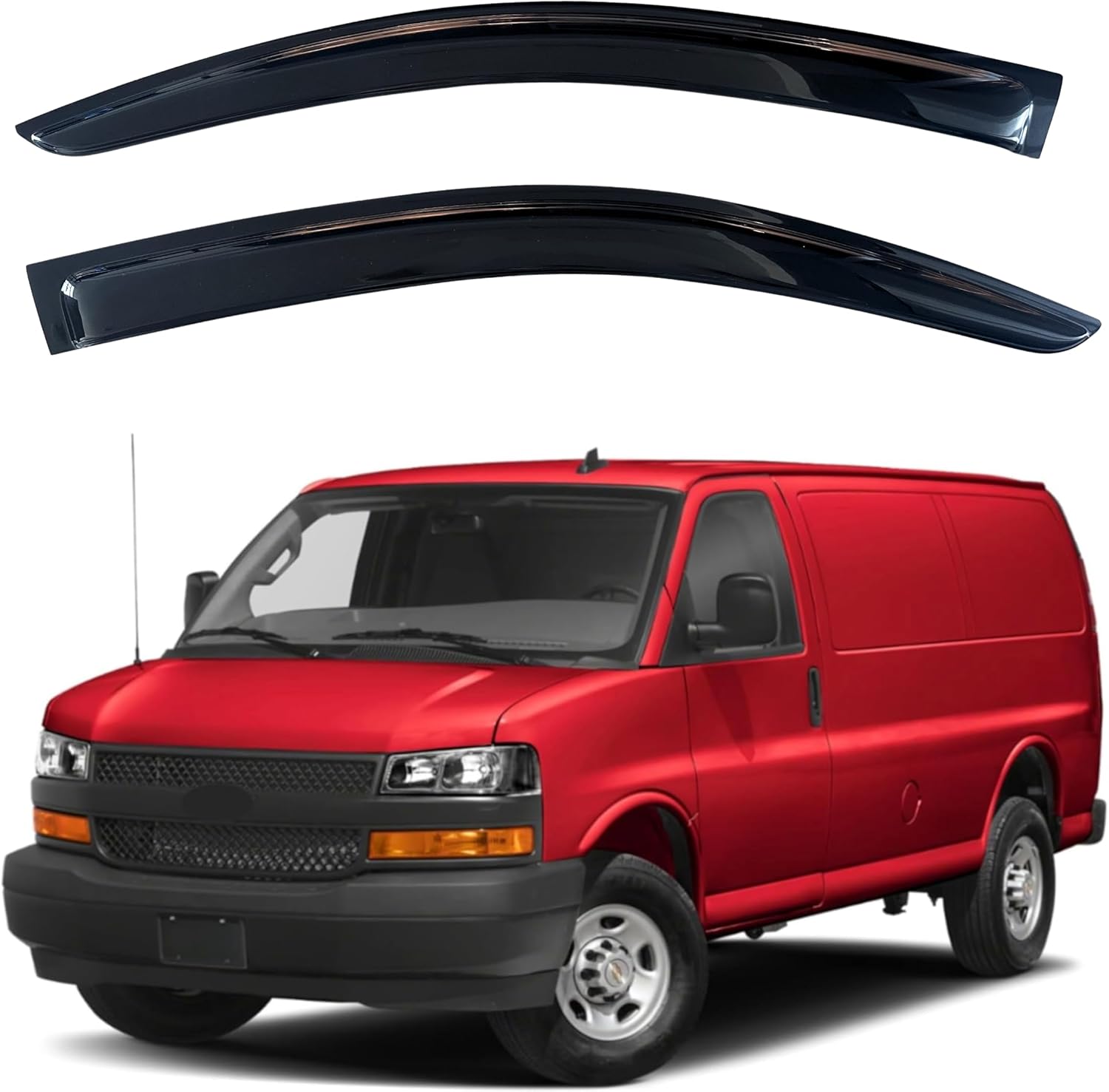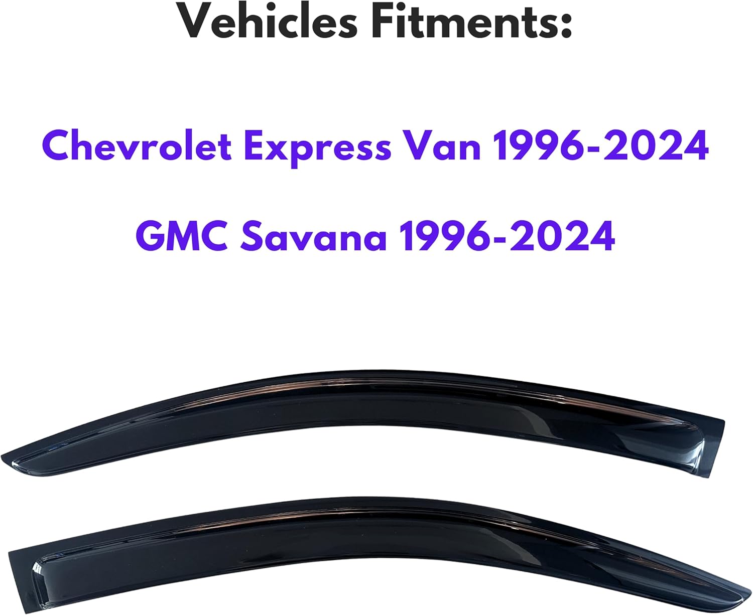 KPY Window Visor Compatible with 1996-2024 Chevrolet Express Van & GMC Savana, 2PC Rain Guard Side Window Vent Deflectors Tape-On