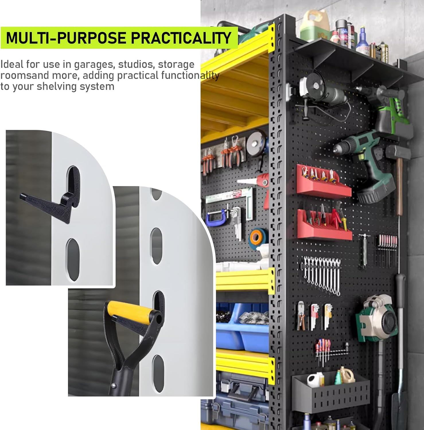 - VERSATILE HOOK DESIGN: Includes L-shaped hooks and J-shaped hooks, specially designed for keyhole slots on garage shelves and industrial storage racks, perfect for hanging tools or other storage needs.