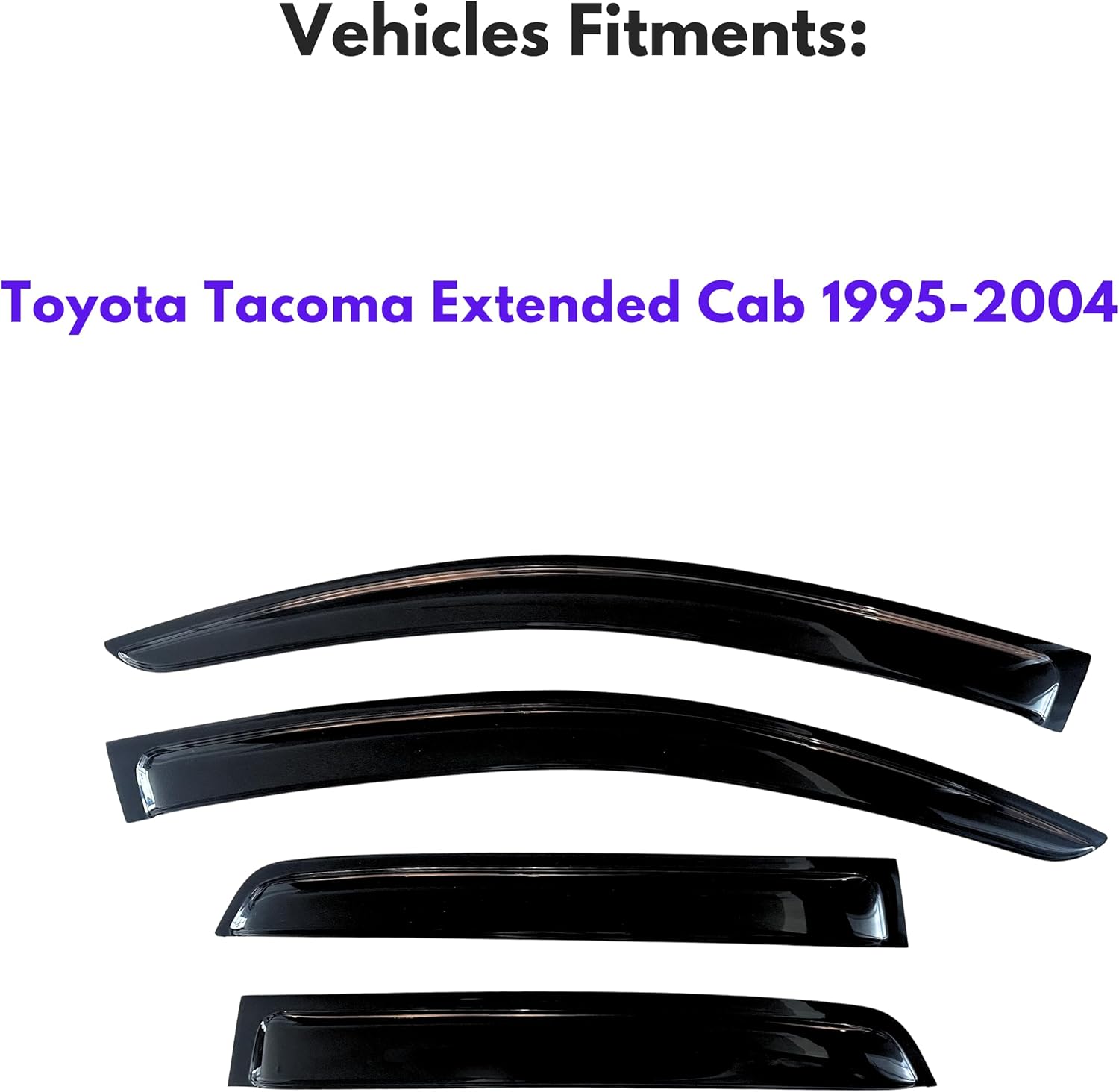 - 【Perfect Fit】KPY window visors rain guards vent deflectors compatible with Toyota Tacoma Extended Cab 1995-2004 (Extended Cab Only)