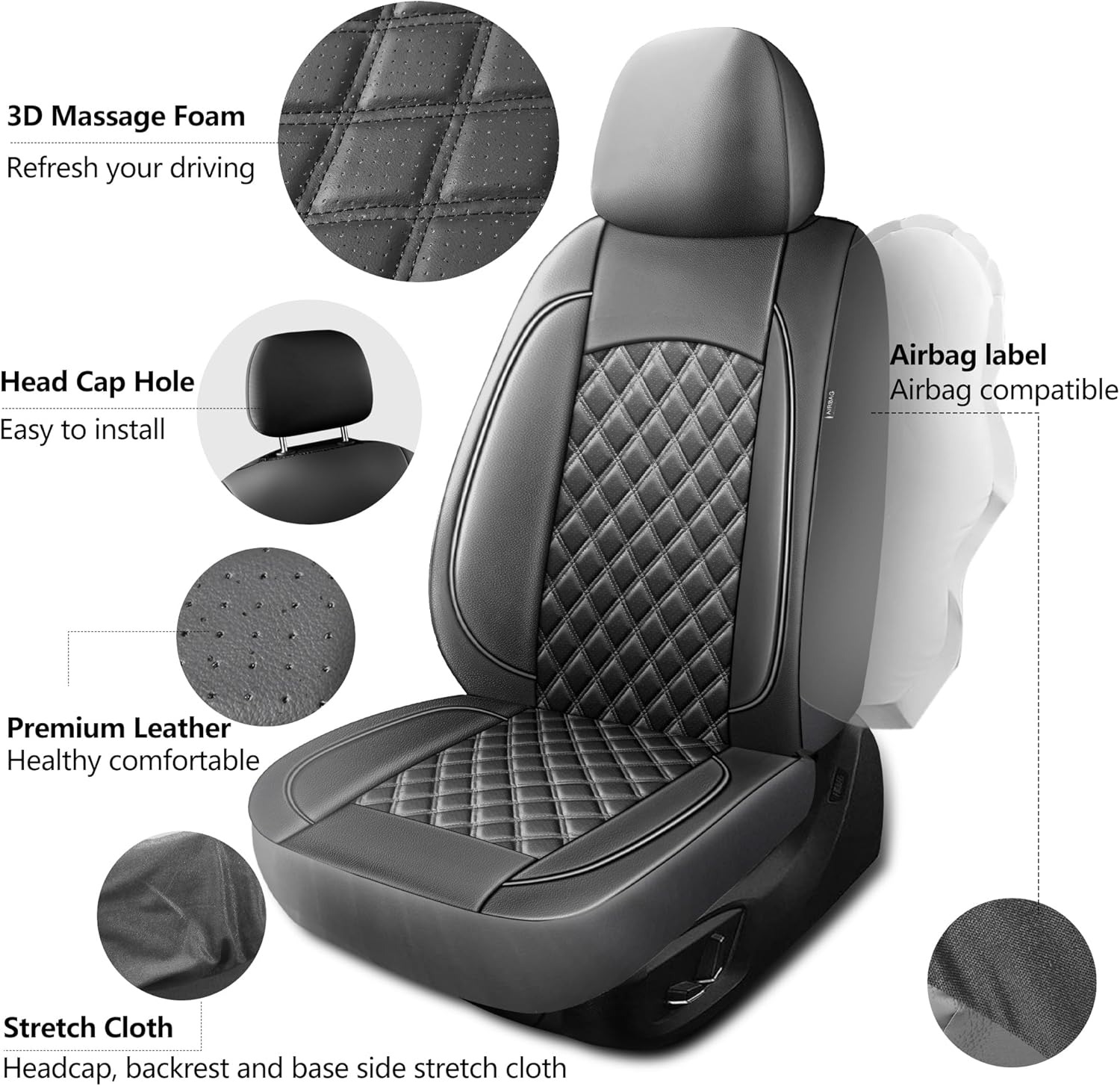 - Airbag Compatible:Our seat covers are airbag-compatible with reserved openings for headrest covers and seat belts, fitting most vehicles. Easy to install, they ensure safety with our exclusive airbag-patented design. Seat covers for cars protect both you and your passengers without interfering with seat belt buckles.