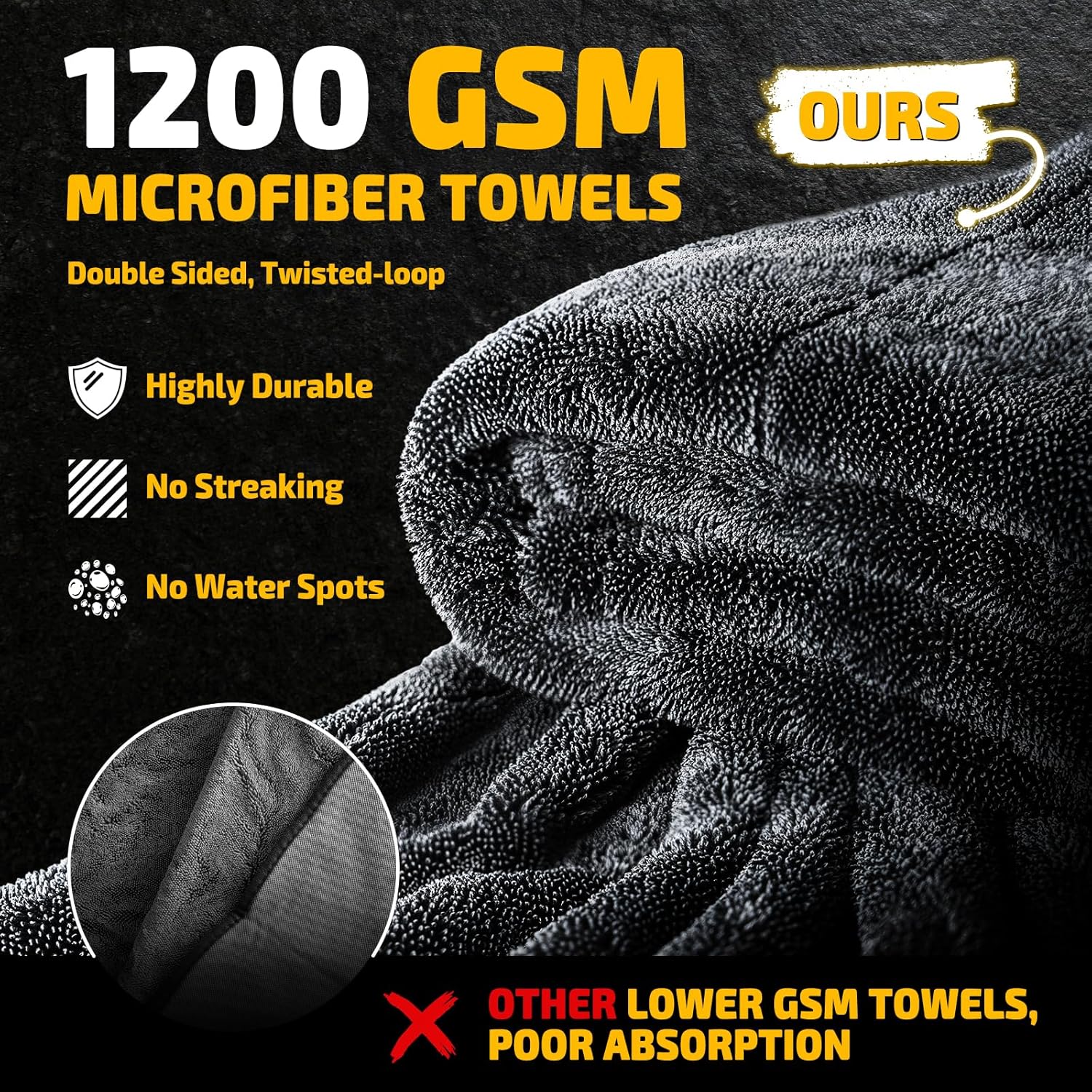 2-Pack 1200 GSM Car Drying Towels – Microfiber Towels for Cars (36" x 24"), Ultra-Absorbent, Streak-Free, Scratch-Free, No Water Spots, Double-Twist Pile & Edgeless Design