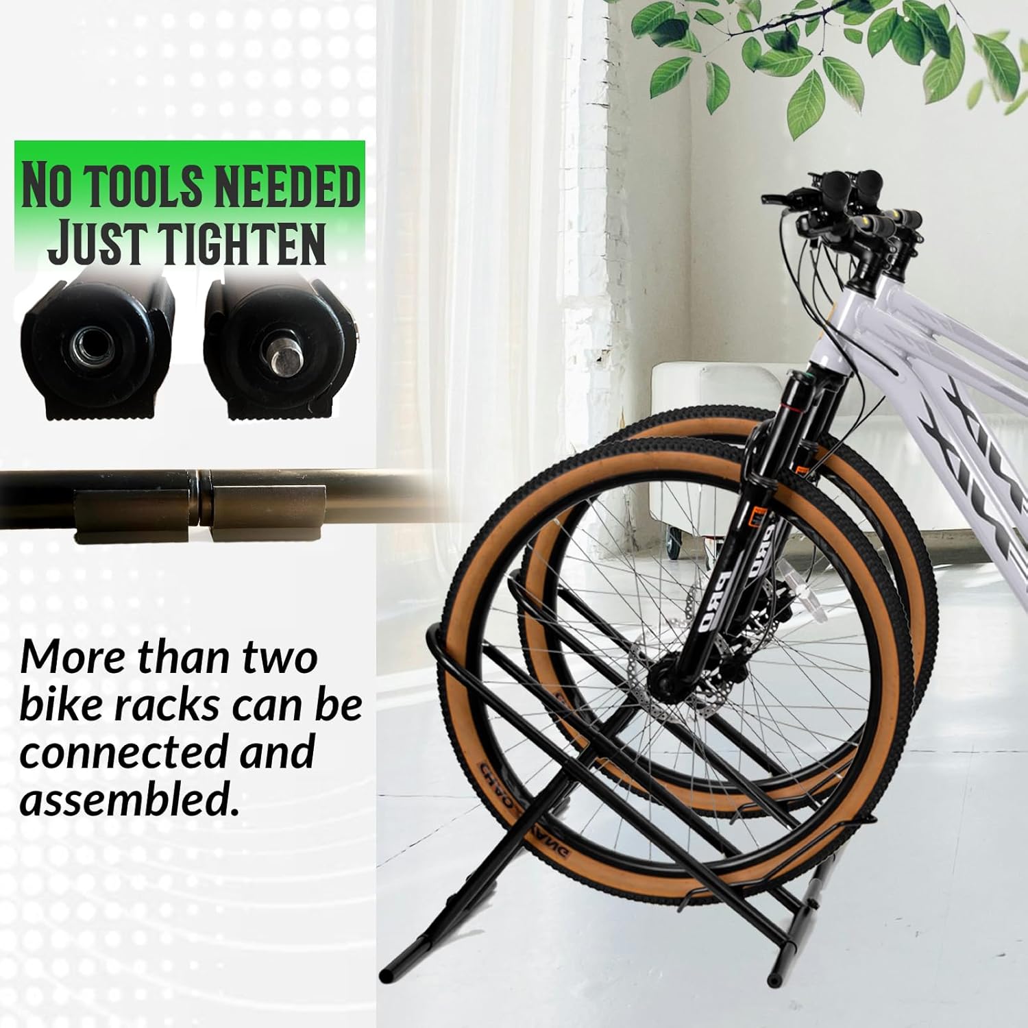 - Easy to Assemble: Skip the hassle of complicated assembly! This bicycle rack is designed for quick and easy setup—no tools required, no need to tighten tricky screws, and no tedious steps. In just minutes, you’ll have a fully functional bike stand, giving you more time to enjoy the convenience of organized bike storage without the frustration of lengthy installation.