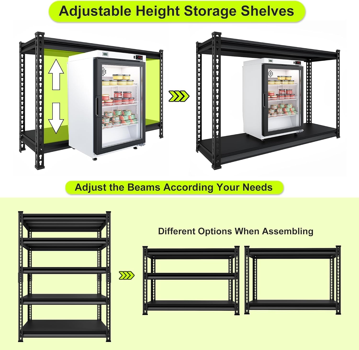 - 【Safe&Rust-Proof】The entire all-metal shelves are locked by pins to ensure crossbeams stay seated and 4 support straps to prevent twisting or spreading. The powder-coated finish on the steel uprights, support straps, and crossbeams, easy to clean, moisture-proof and rust-proof.