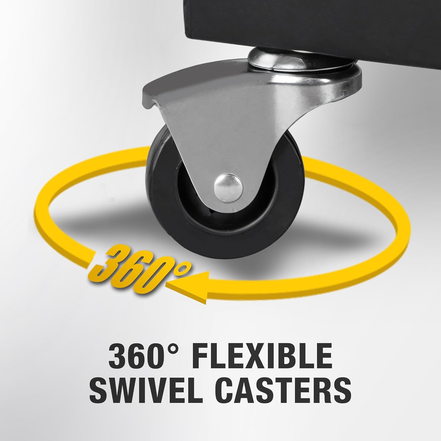 - Smooth and Flexible Movement: Equipped with 4x 360° swivel casters, this rolling stool for garage ensures effortless mobility as a mechanics rolling stool or shop rolling stool, covering all directions for work stools with wheels.