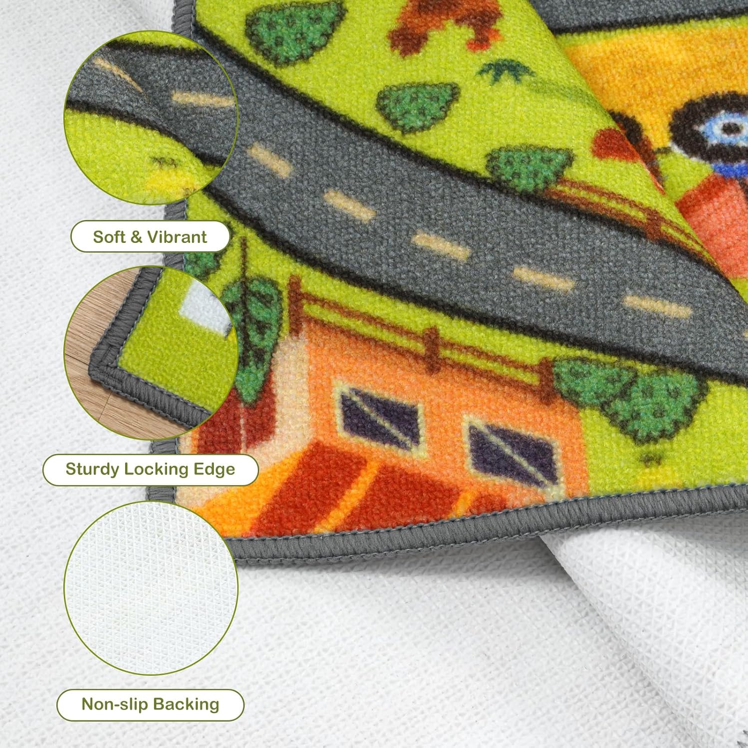 - More Surprises:Our car track rug, with a unique country farm life design, vibrant colors, and clear building road patterns, can promote children's vocabulary development, traffic knowledge learning, hand-eye coordination, motor skills, and cultivate children's spatial cognition and imagination. It is also an ideal choice for kids