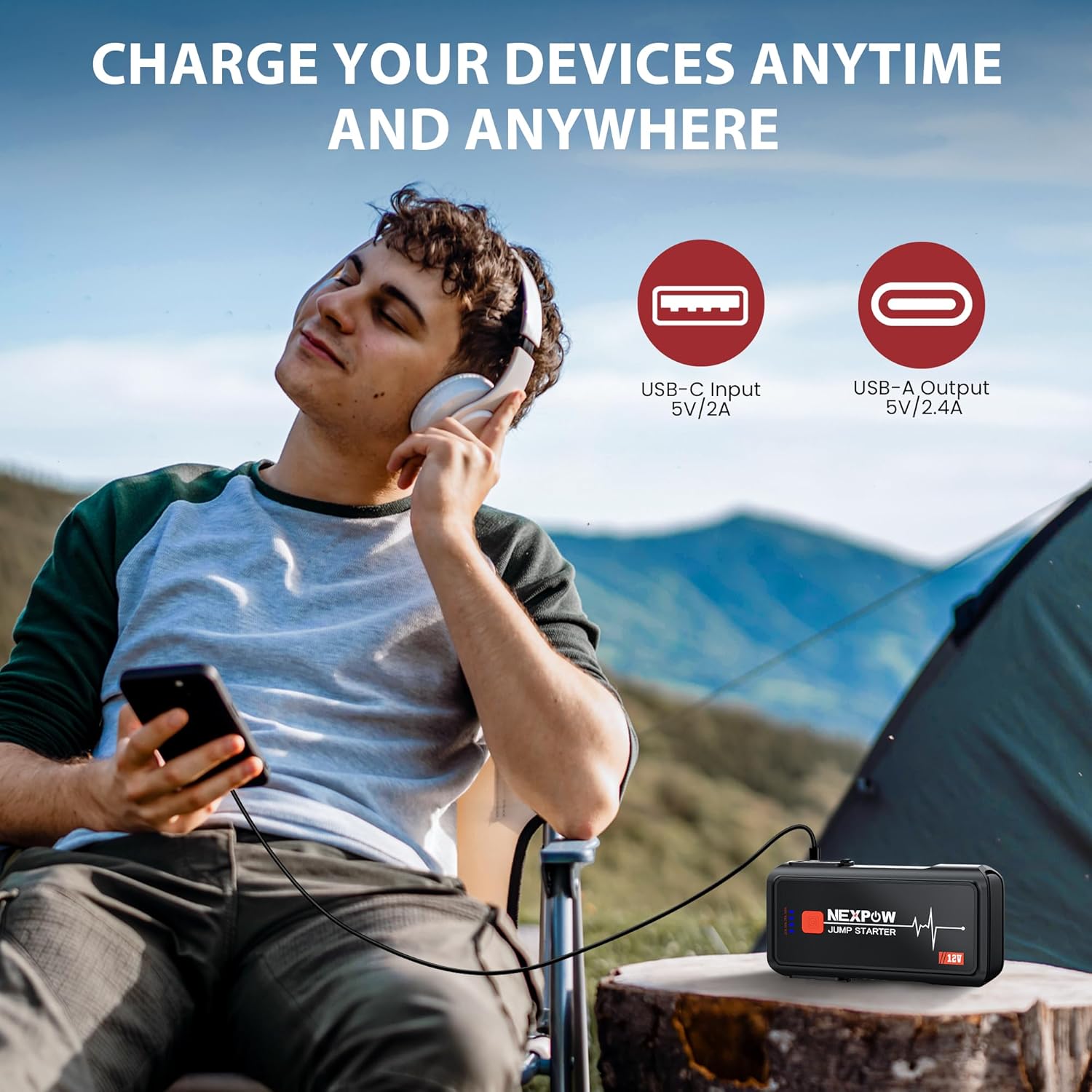 - COMPACT & PORTABLE DESIGN: At just 6.1*3.07*1.5" and weighing only 0.92 lbs, this lightweight jump pack easily fits in your glovebox or backpack, offering on-the-go convenience without the bulk of traditional lead-acid jump starters, making it the perfect travel companion for emergencies.