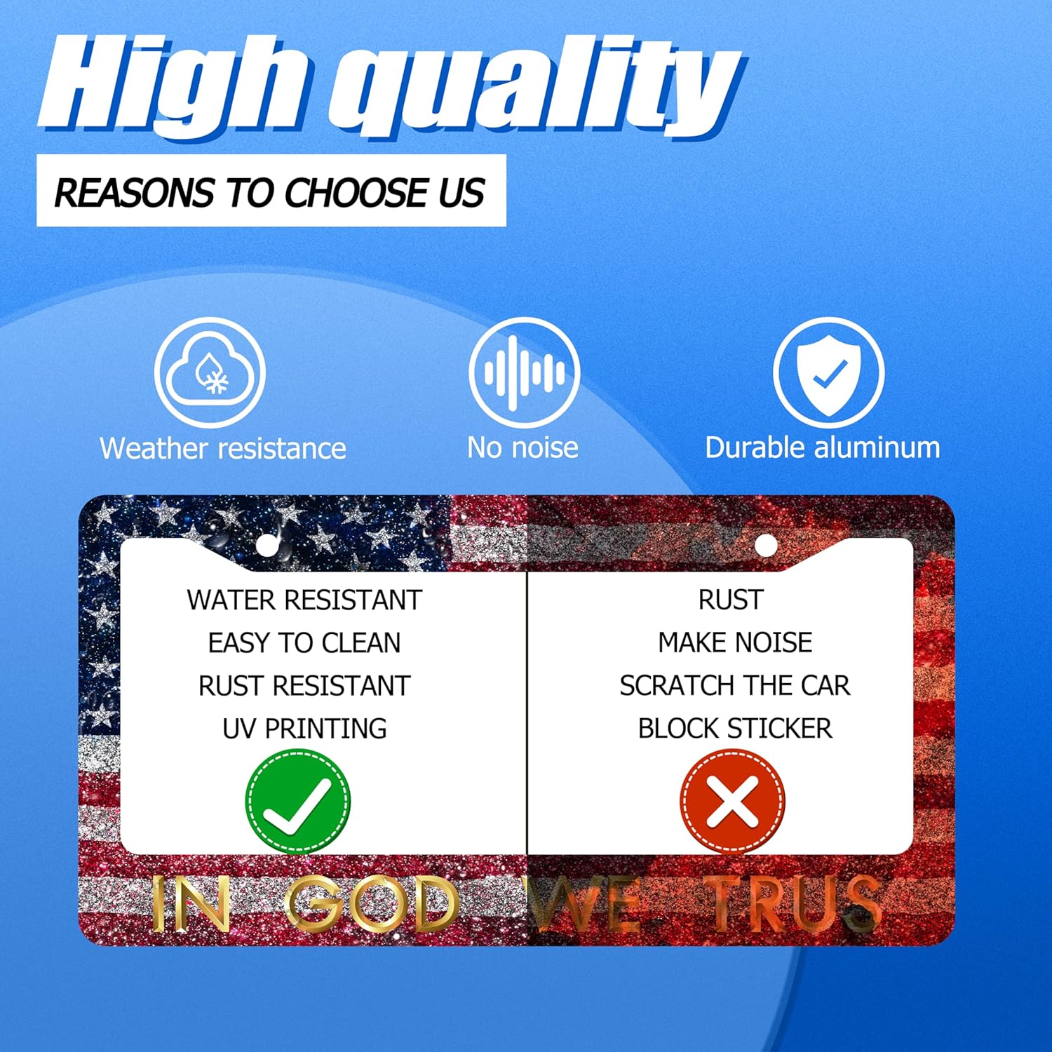 in God We Trust License Plate Frame American Flag License Plate Stainless Steel Funny License Plate Holder Personalized Christian Car Accessory Decoration 12.3" x 6.3"for Men Women