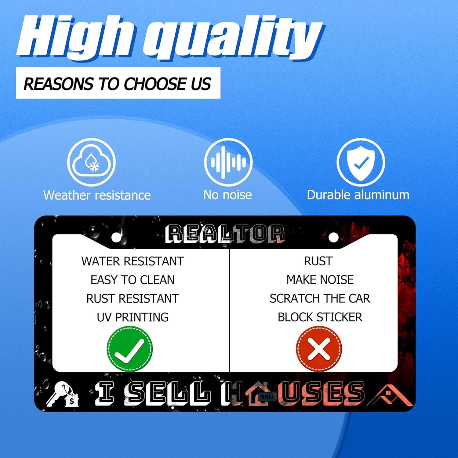 Realtor I Sell Houses License Plate Frame Funny License Plate Stainless Steel Black License Plate Holder Men Women Personalized Car Accessory Decoration 12.3" x 6.3"