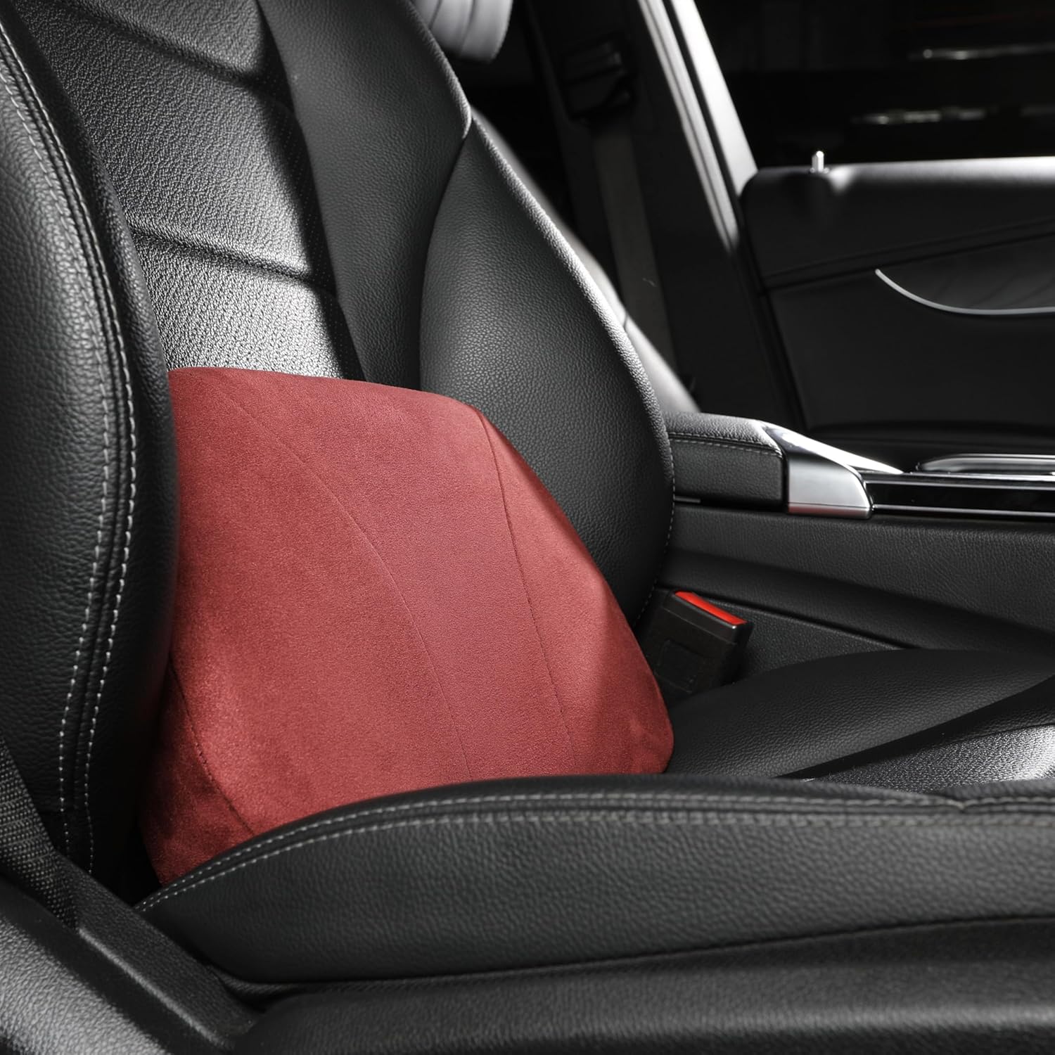 1P Lumbar Support Pillow,15.5x8.7 Memory Foam,Superfiber Suede,Drive car Back Pillows,seat,Office,Rest,Improve Posture(Wine)
