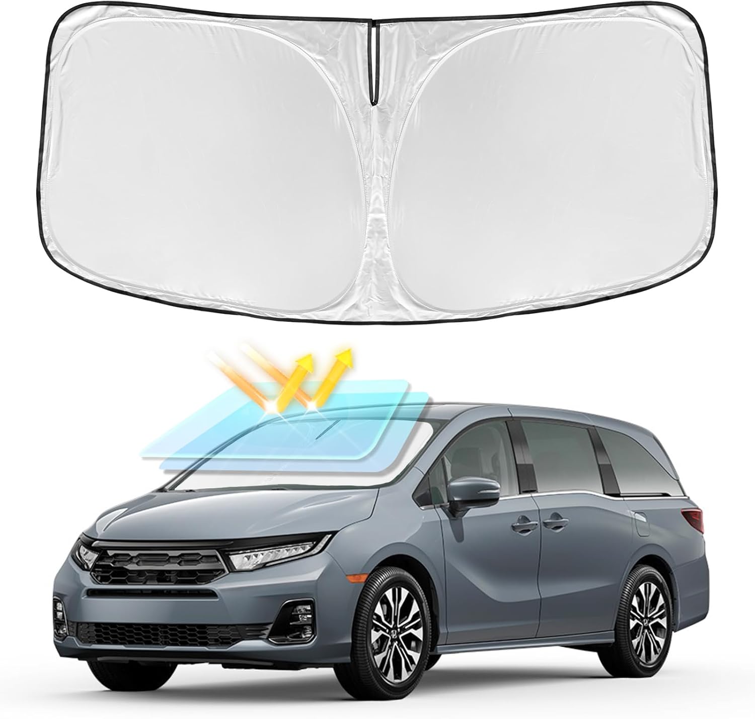 Sun Shade for Honda Odyssey Windshield Cover 2018-2024 2025 2026 4-Layer Front Window Shade Custom for Odyssey LX EX EX-L Touring Elite Sunshade 240T Shade Blocks UV Rays Cooler Car Accessories