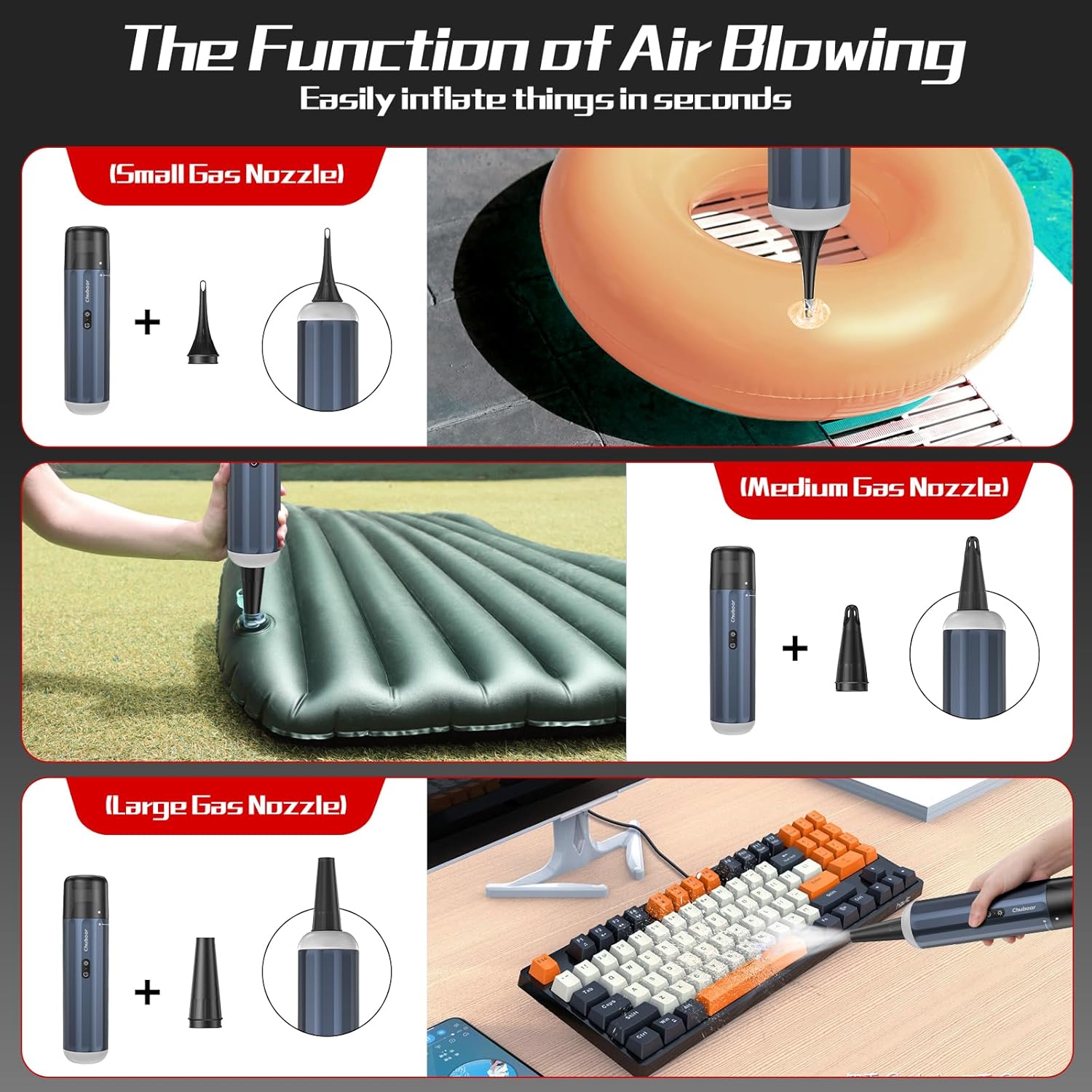 - 🌱【Multiple Accessories & Multiple Uses】Our car vacuum cleaner has a variety of accessories for multiple purposes. Not only can dust busters cordless rechargeable effectively clean the garbage in the deep place, but also inflate the swimming ring, and it can also vacuum the vacuum bag.The more functions, the more it can meet the various needs of life!