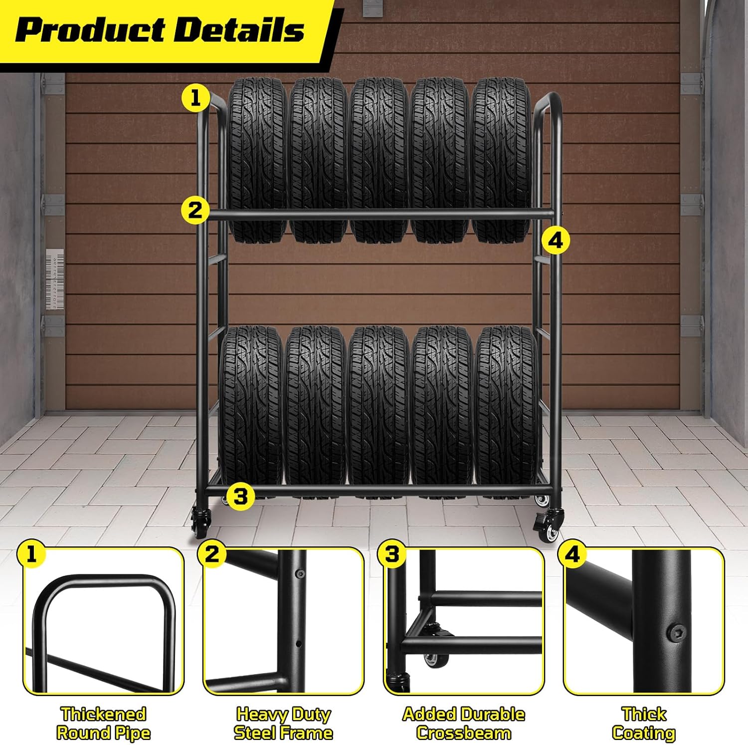 - Thick Coating:The thick coating of this rolling tire rack makes it more wear-resistant, and the surface has been sandblasted to prevent paint peeling off after long-term use, making it look fashionable and novel in the coming years