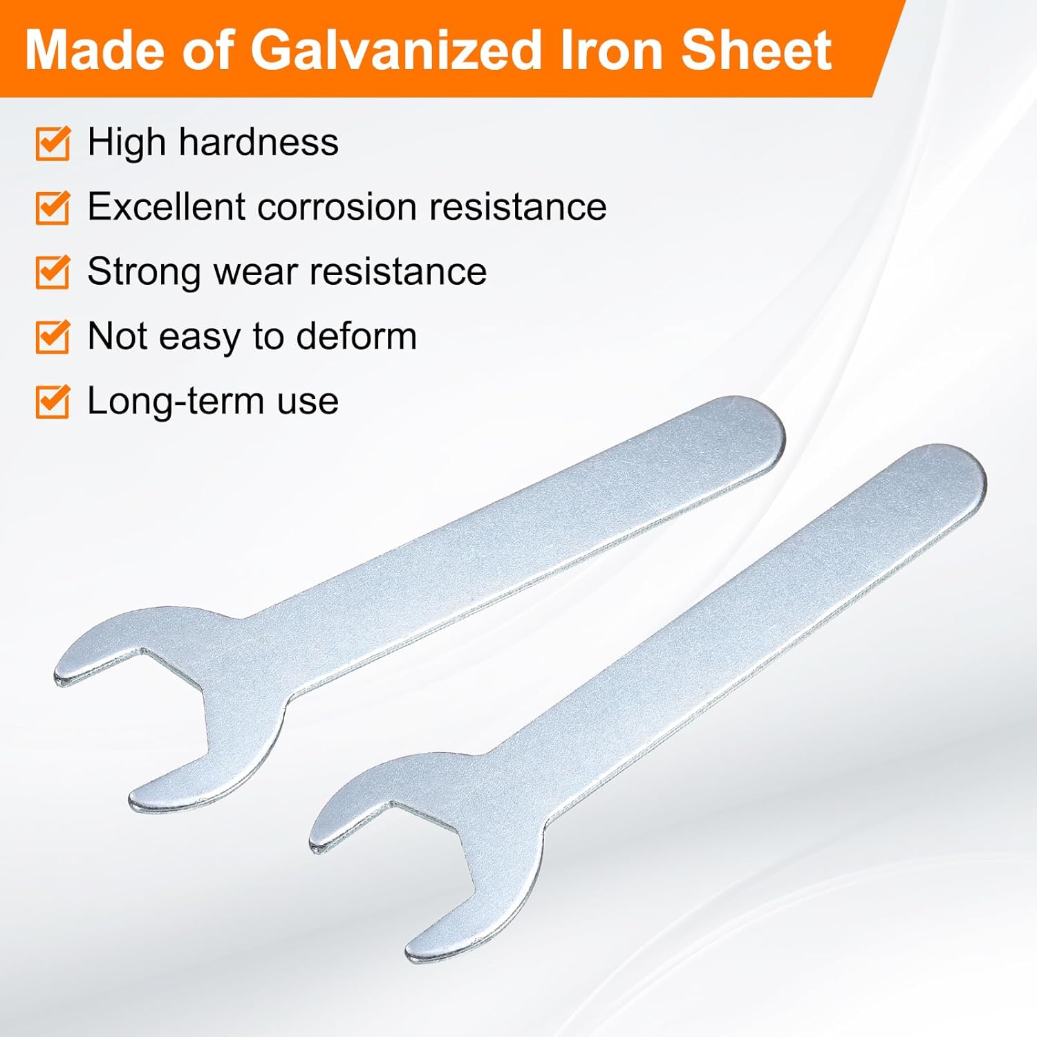 - Long Lasting - Our single open-end wrench is made of an iron plate, which has high hardness and excellent corrosion resistance. The surface galvanizing improves its wear resistance, keeps its surface smooth and reduces wear, is not easy to deform, and can be used for a long time.