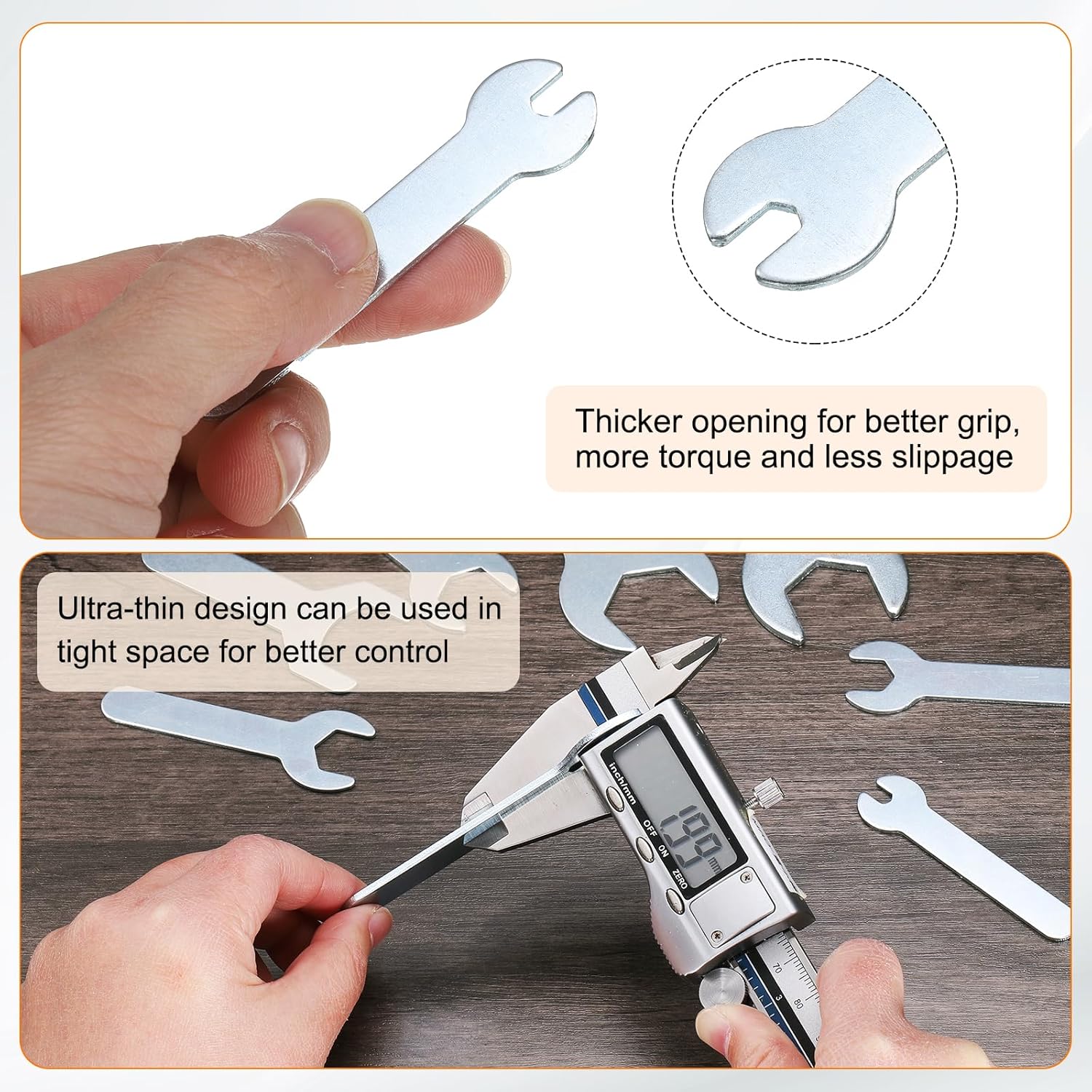 - Standard Size - The standard open-end wrench's increased thickness ensures a more secure grip on nuts and bolts, resulting in better torque transfer and less slippage. The precision socket allows for quick and easy adjustment of the wrench size to accommodate different bolt sizes. The ultra-thin handle is comfortable to hold and improves work efficiency.
