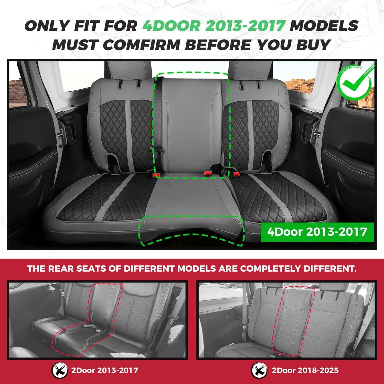 for Jeep Wrangler Seat Covers 4Door JK 2013 2014 2015 2016 2017, Custom Fit Car Seat Cover Full Set, Luxury Leather Seat Protectors, Waterproof SUV Interior Cushions Accessories, Gray Black