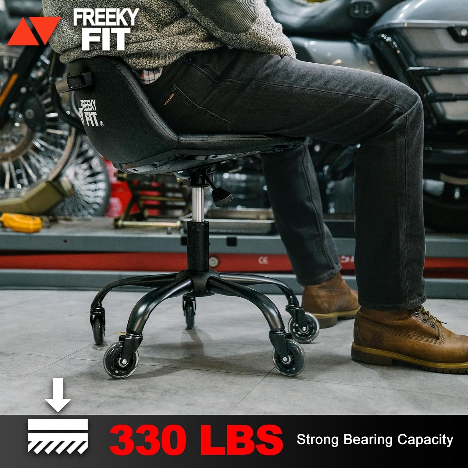- 【Heavy Duty Mechanic Stool】The frame of this rolling garage stool is made of high-quality metal steel, and the maximum capacity is 330 LBS (149.7kg), which can be sat by almost anyone. Its 5-claw structure provides durability and stability for long hours in the garage.Perfect for mechanics, DIY Lovers, automotive professional